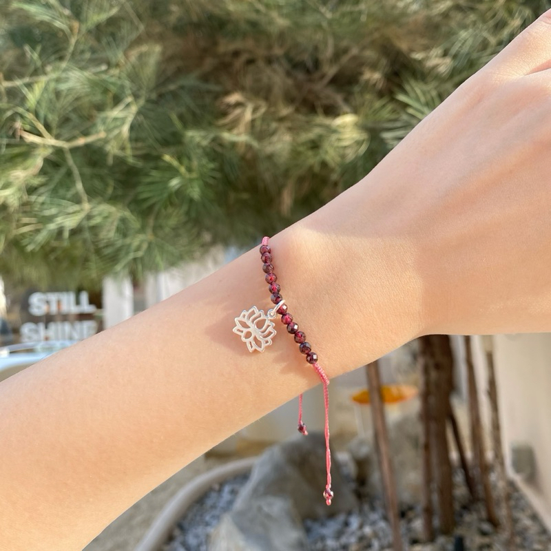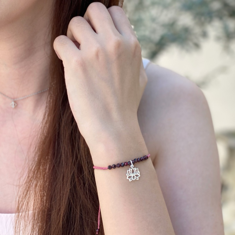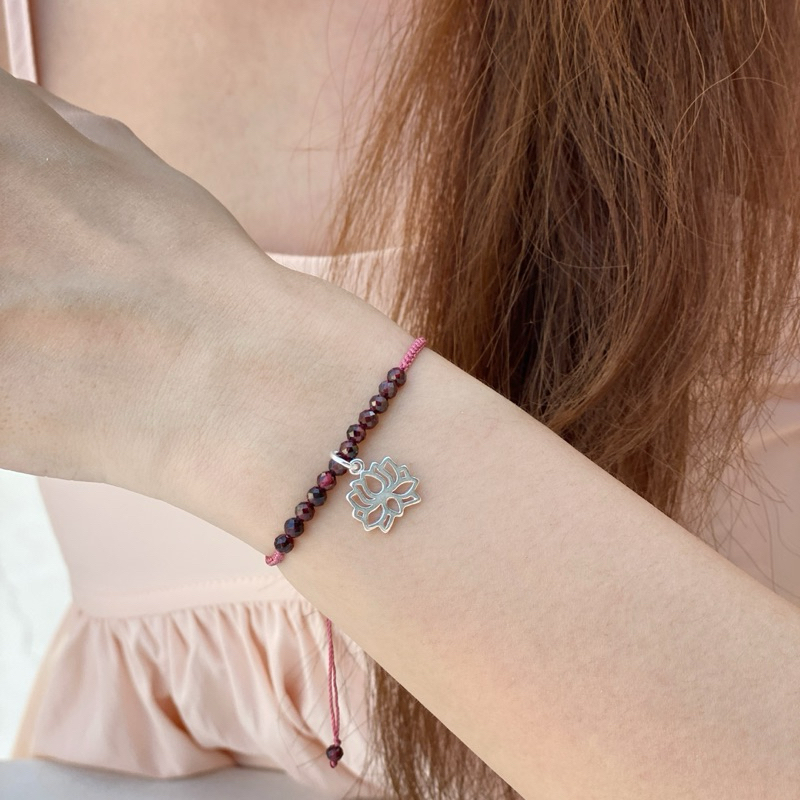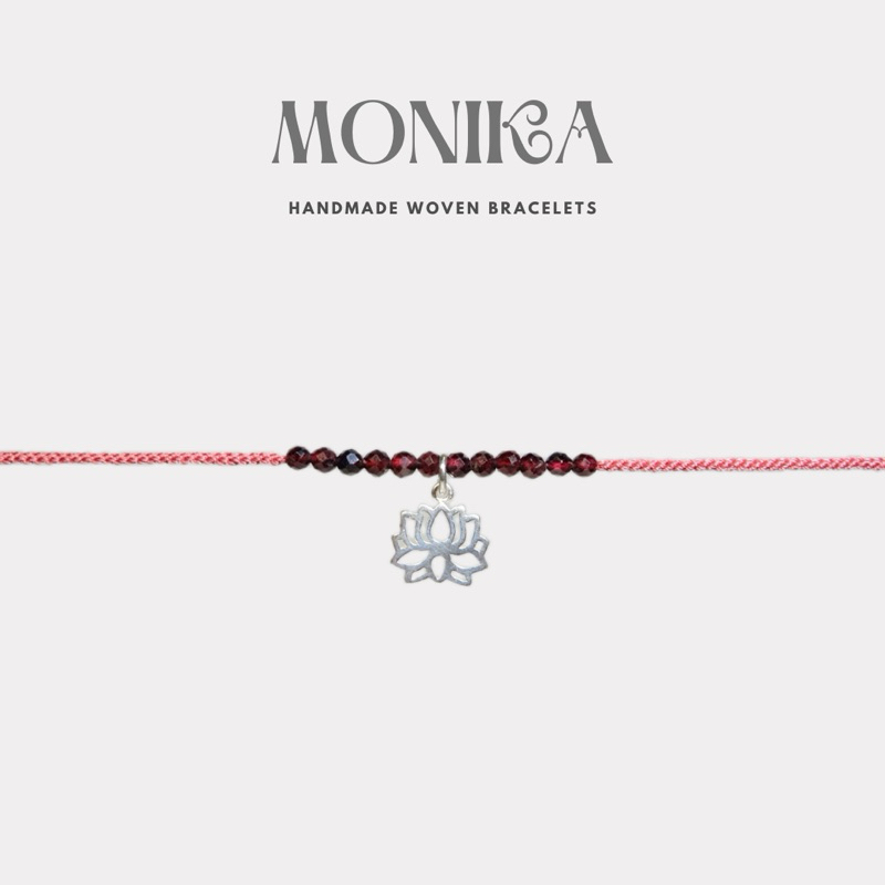 Monika-Lotus Flower Garnet (Monika Health Love Luck) 92.5% Pure Silver Pendant