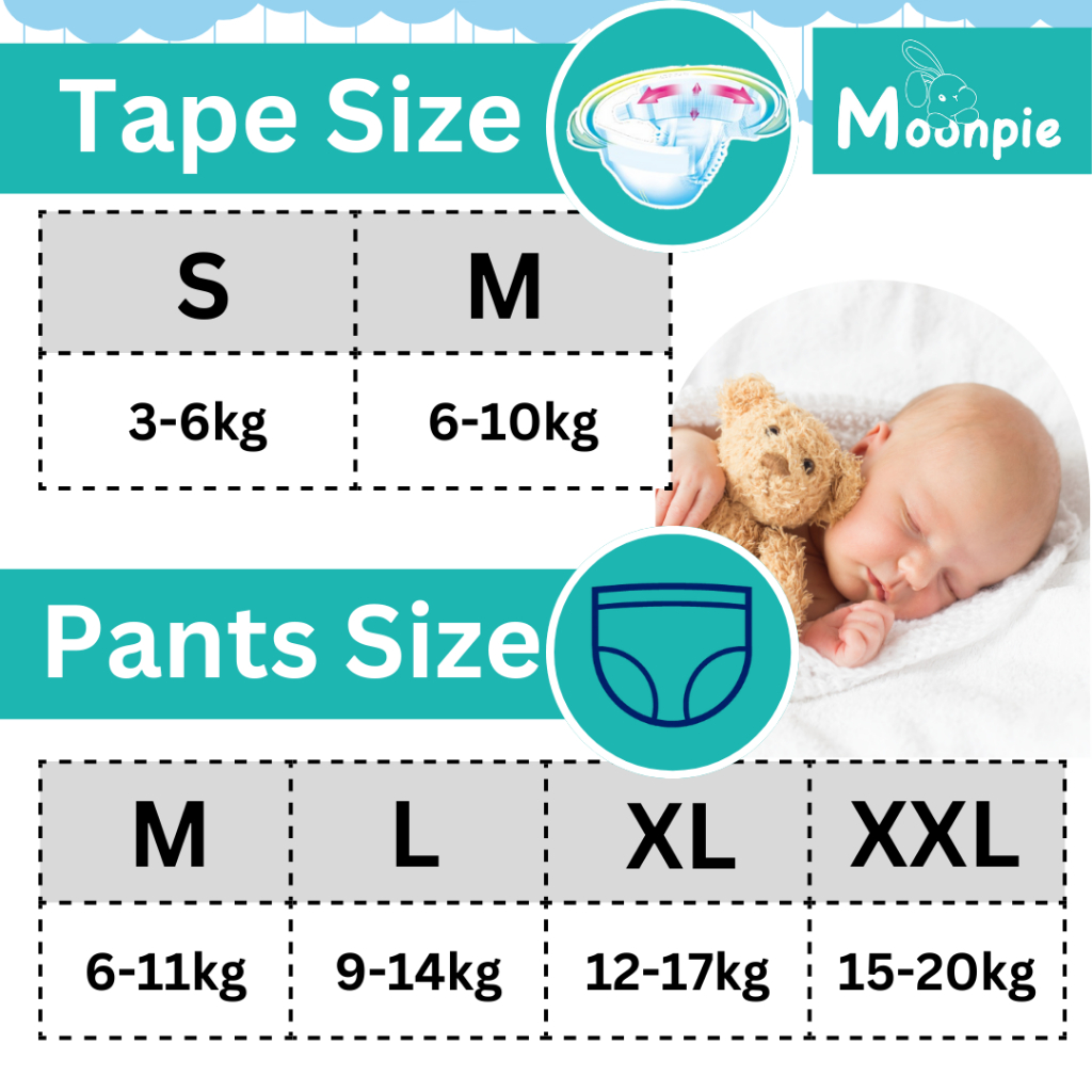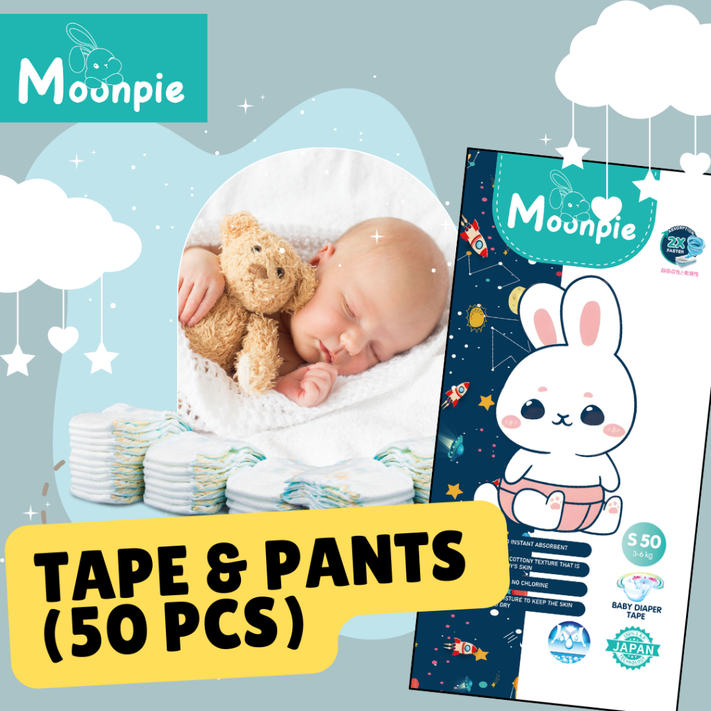 Moonpie 50 keping Bayi Lampin Pita dan Seluar Size S,M,L,XL,XXL Baby Diaper Pants & Tape