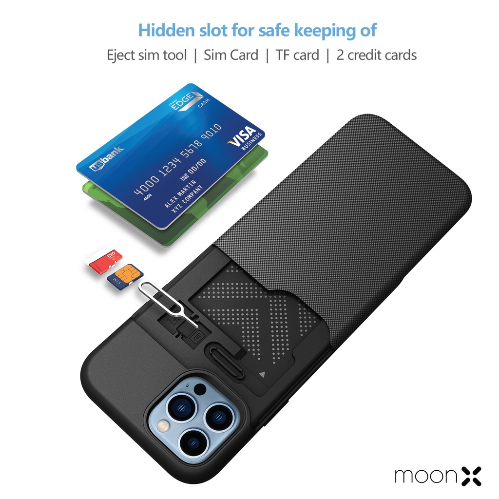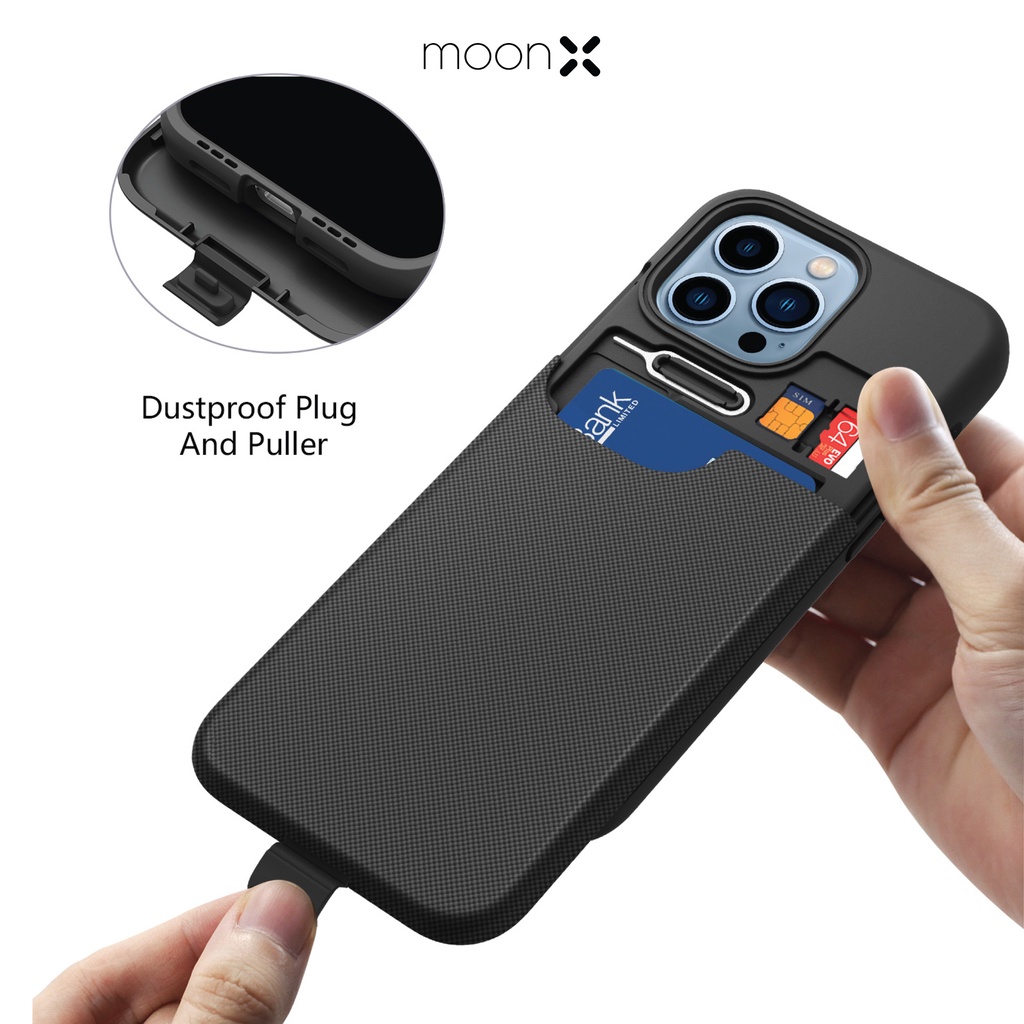 [MoonX] SECURE+ For iP 13/ 12/ 11/ Pro/ Pro Max Case Armor With Card Holder Slot Drop Protection Casing Cover