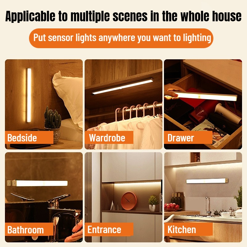 Motion sensor light indoor Usb rechargeable light LED Under cabinet Night light lamp Closet lampu led tidur bilik 感應燈