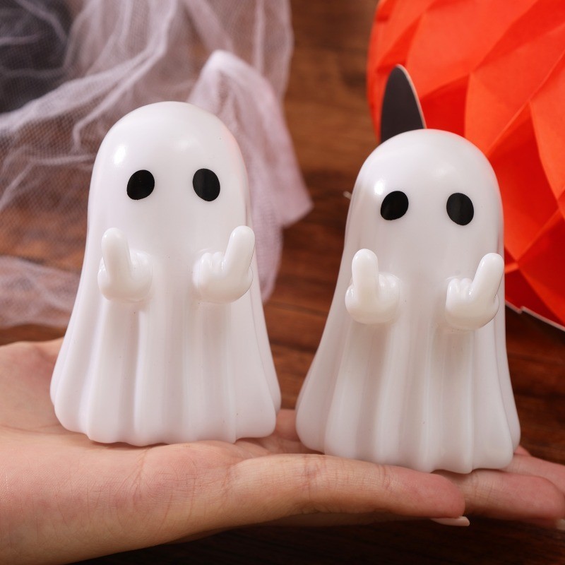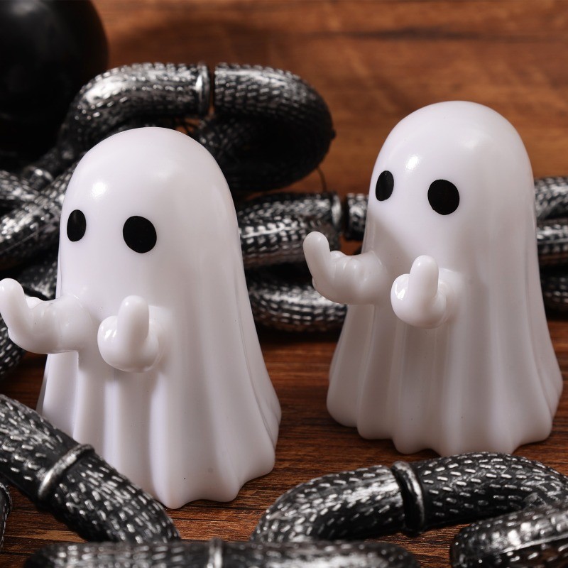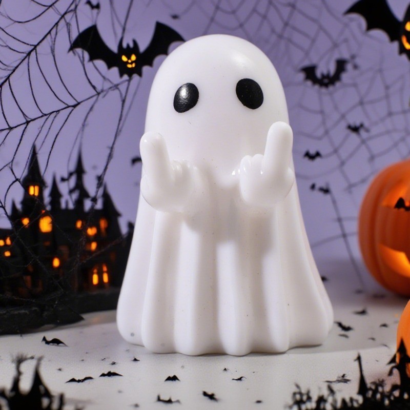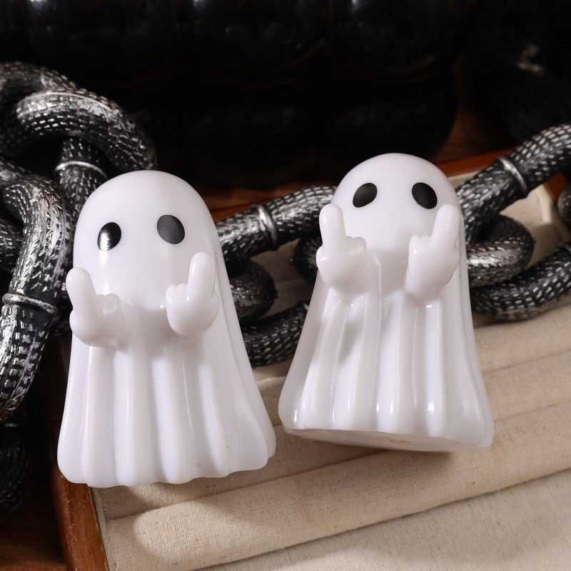 MP 4Pcs Halloween Middle Finger Ghost Ornaments - Resin Process Sculpture - Mini White Ghost Statue - Small Scary Ghost