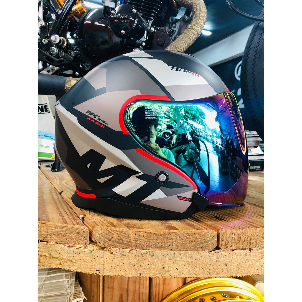 MT Helmet Open Faced Helmet OF504SV Thunder 3 Jet Visor Smoke / Rainbow Iridium / Chrome Mirror Visor