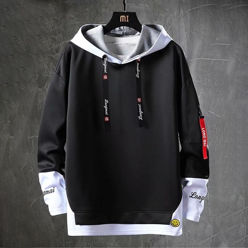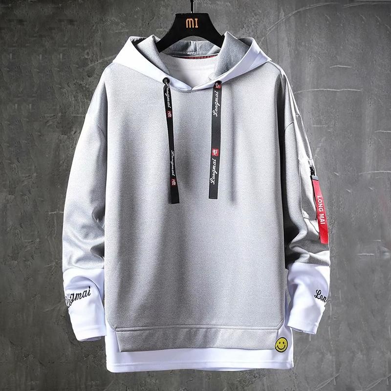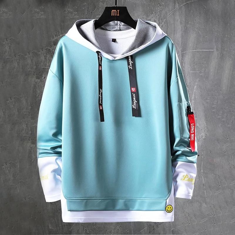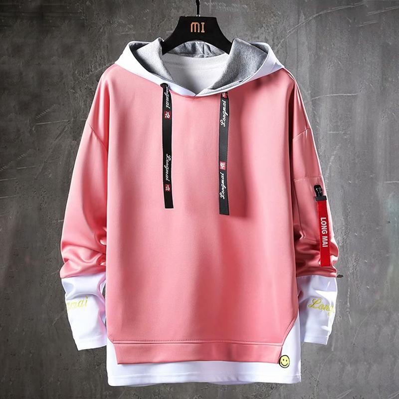 Multi-Color Ready Stock Korean Style melabelkan hoodie pullover untuk lelaki College Style Layered Looking Casual loose Lapel Collar Long Sleeve oversized hoodie mens