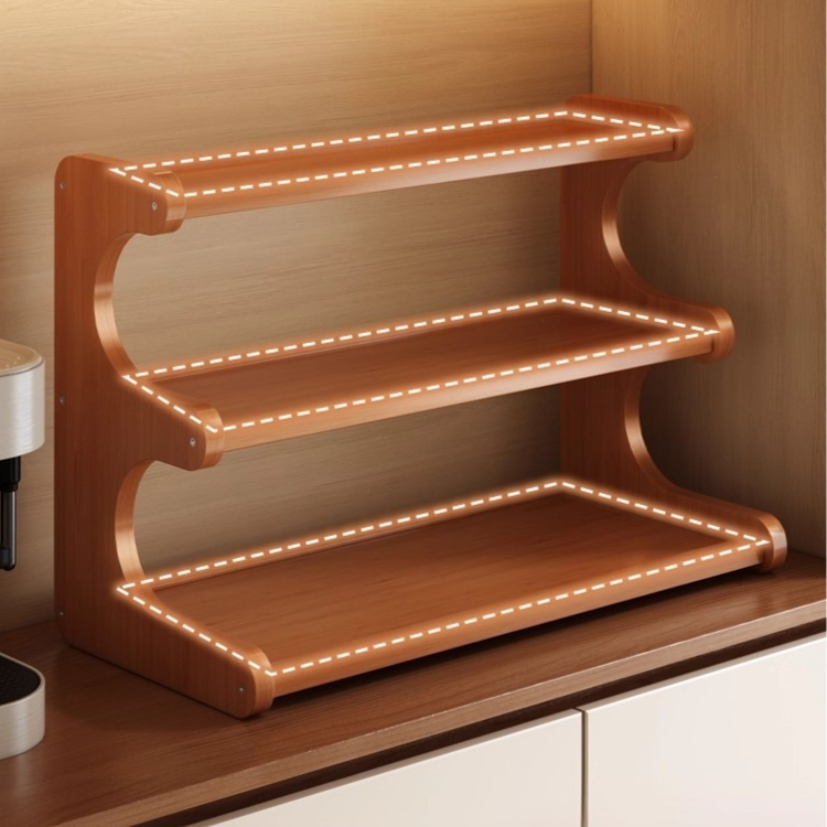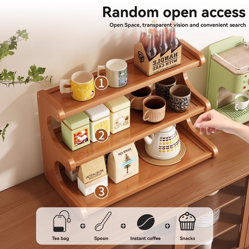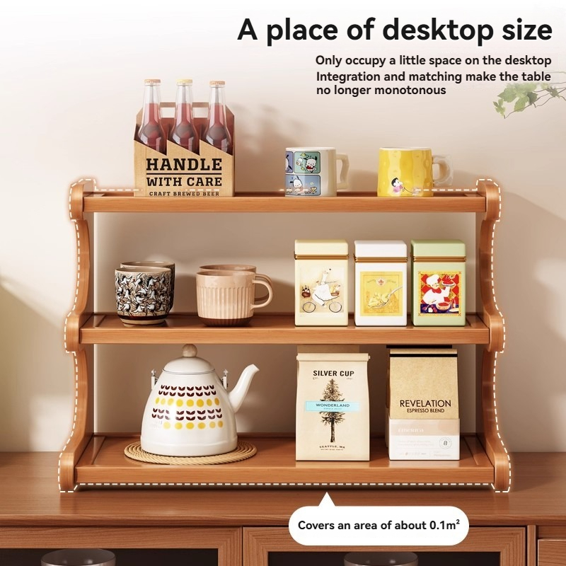 Multi-Layer Kitchen Storage Bamboo Kitchen Rack Kitchen Desktop Spice Rack Cup Holder Rack