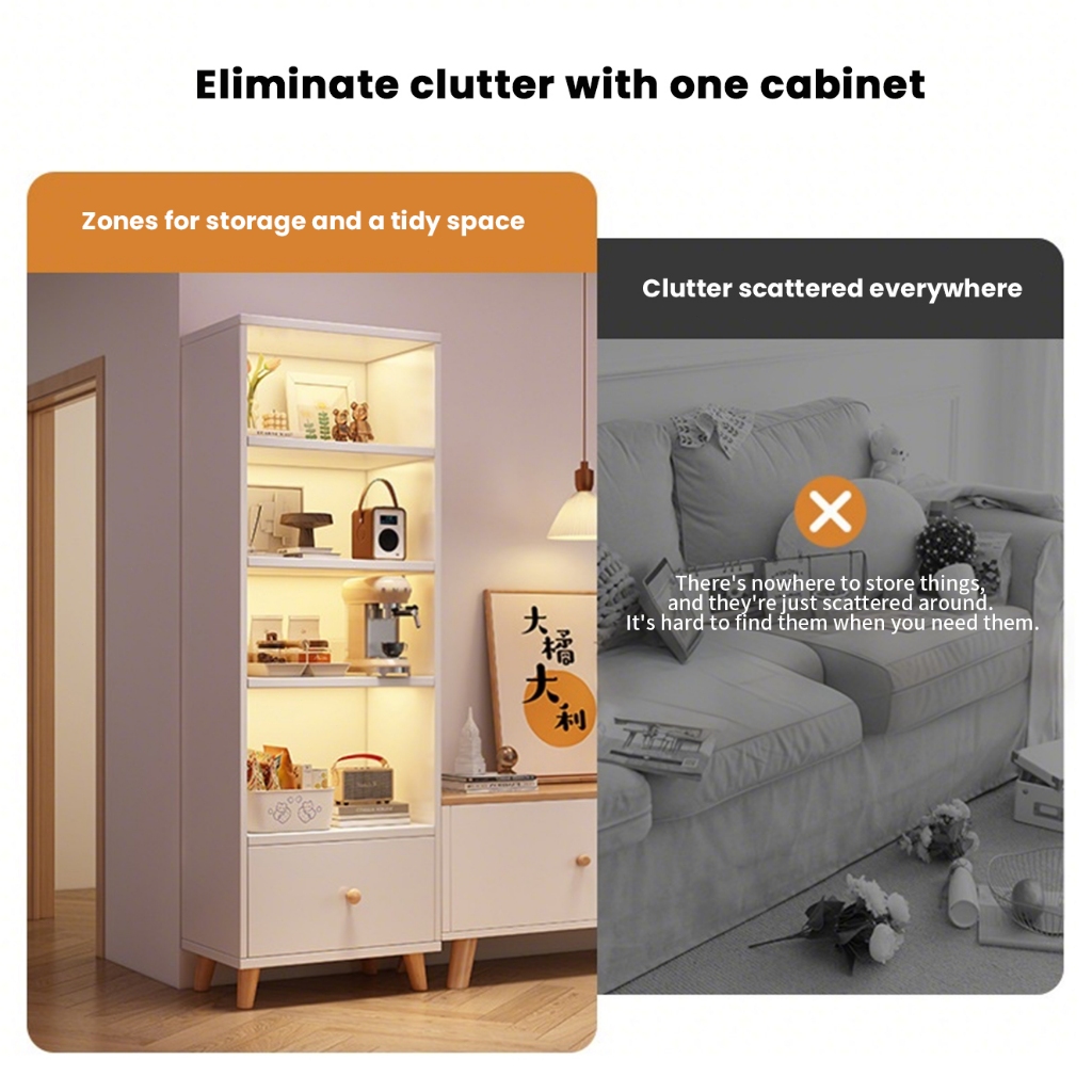 Multipurpose 4 Tier Bookshelf Narrow-Edge Storage Cabinet Living Room Side Cabinet Lemari Penyimpanan储物柜