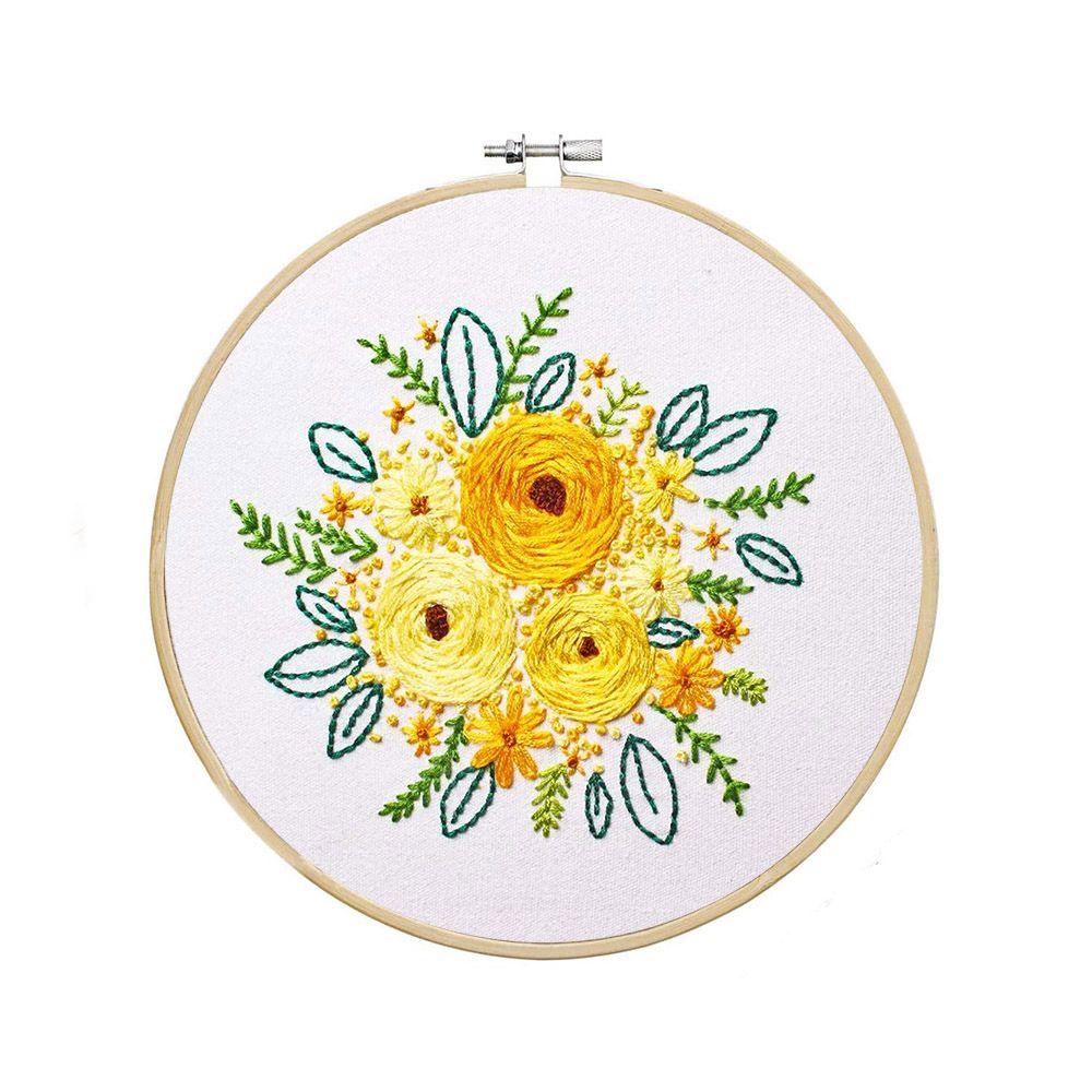 MUNDAN Embroidery Kit Floral Series with Bamboo Embroidery Hoop Needlework Crochet DIY Kit Embroidery Beginner Set Sulaiman