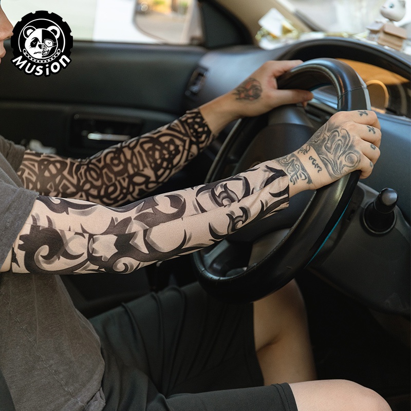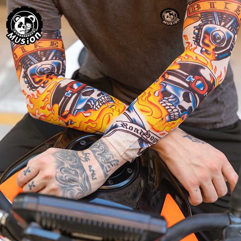 Musion Handsock Tattoo Sleeve Man Set a Pair 2 Pcs Anti UV Dustproof Bicycle Hand Sock Tattoo Arm Sleeves Unisex for Cycling
