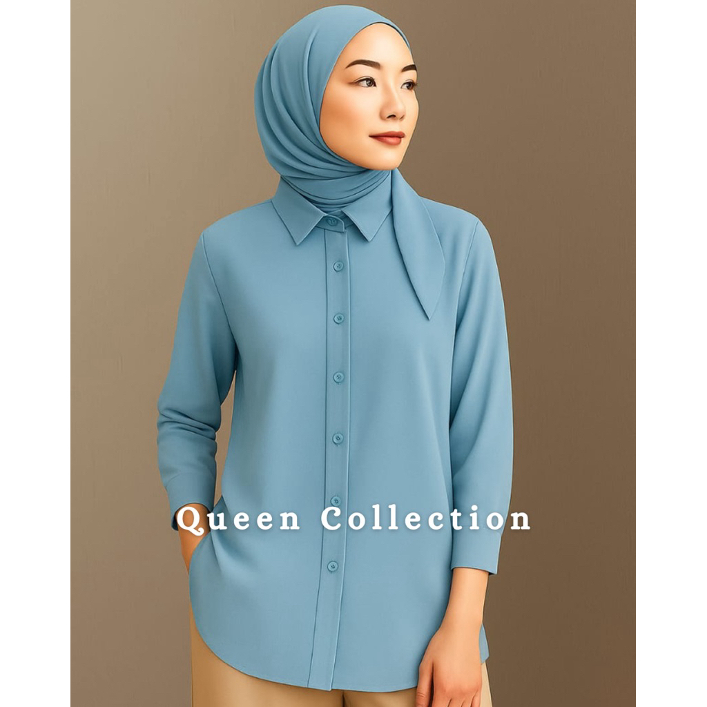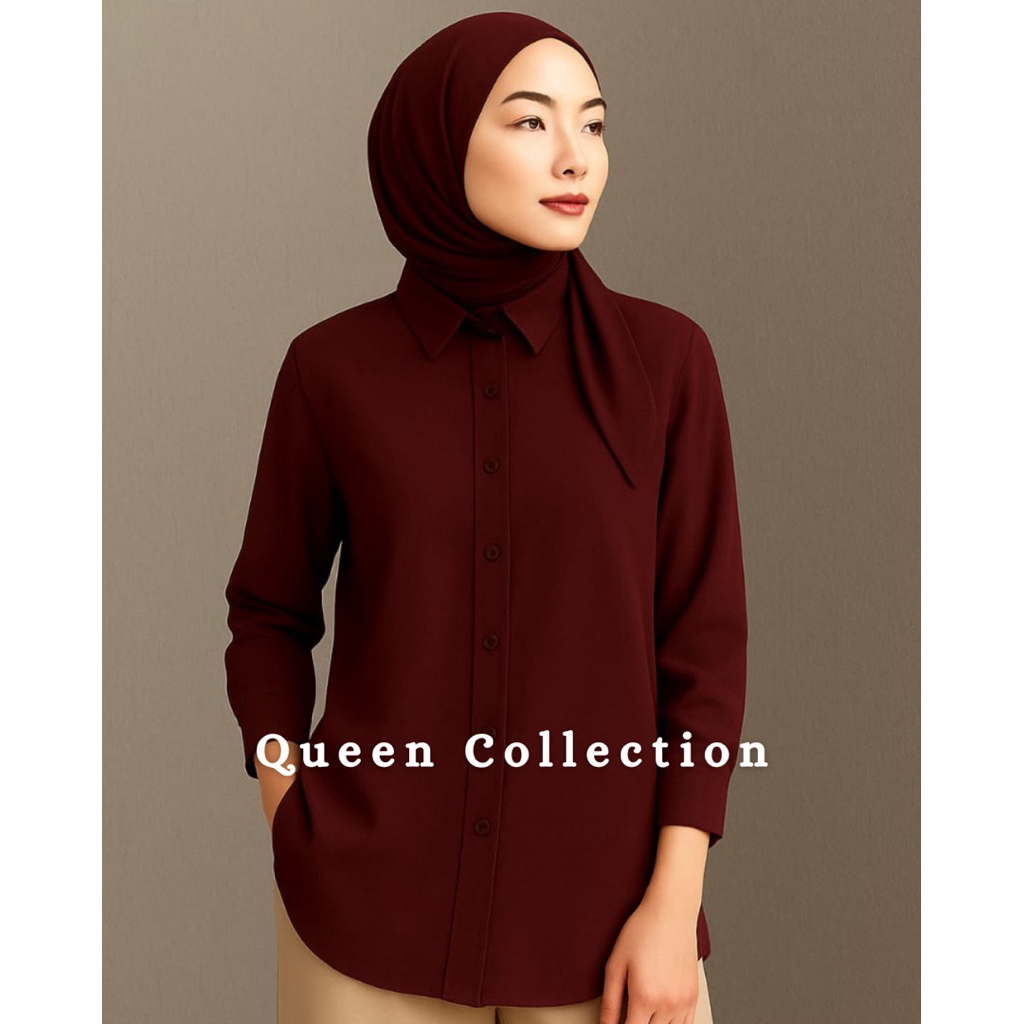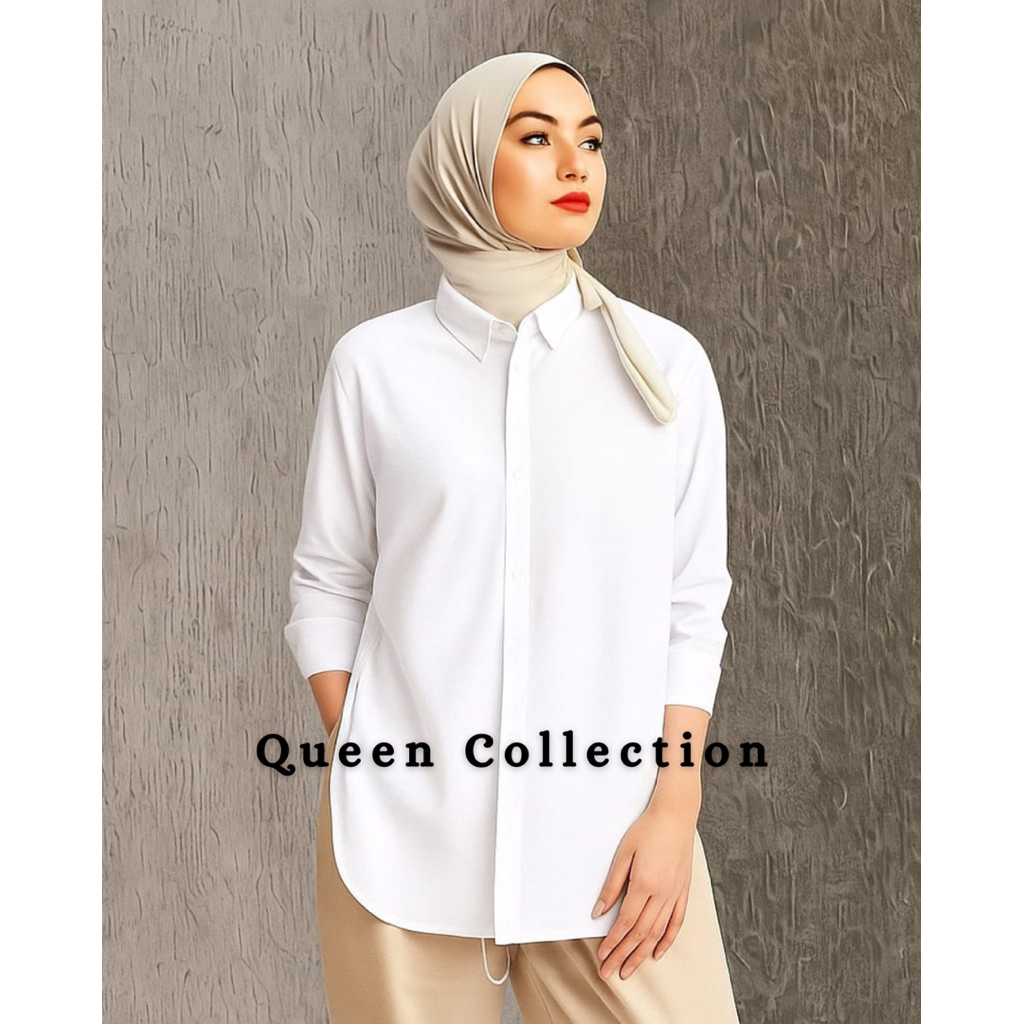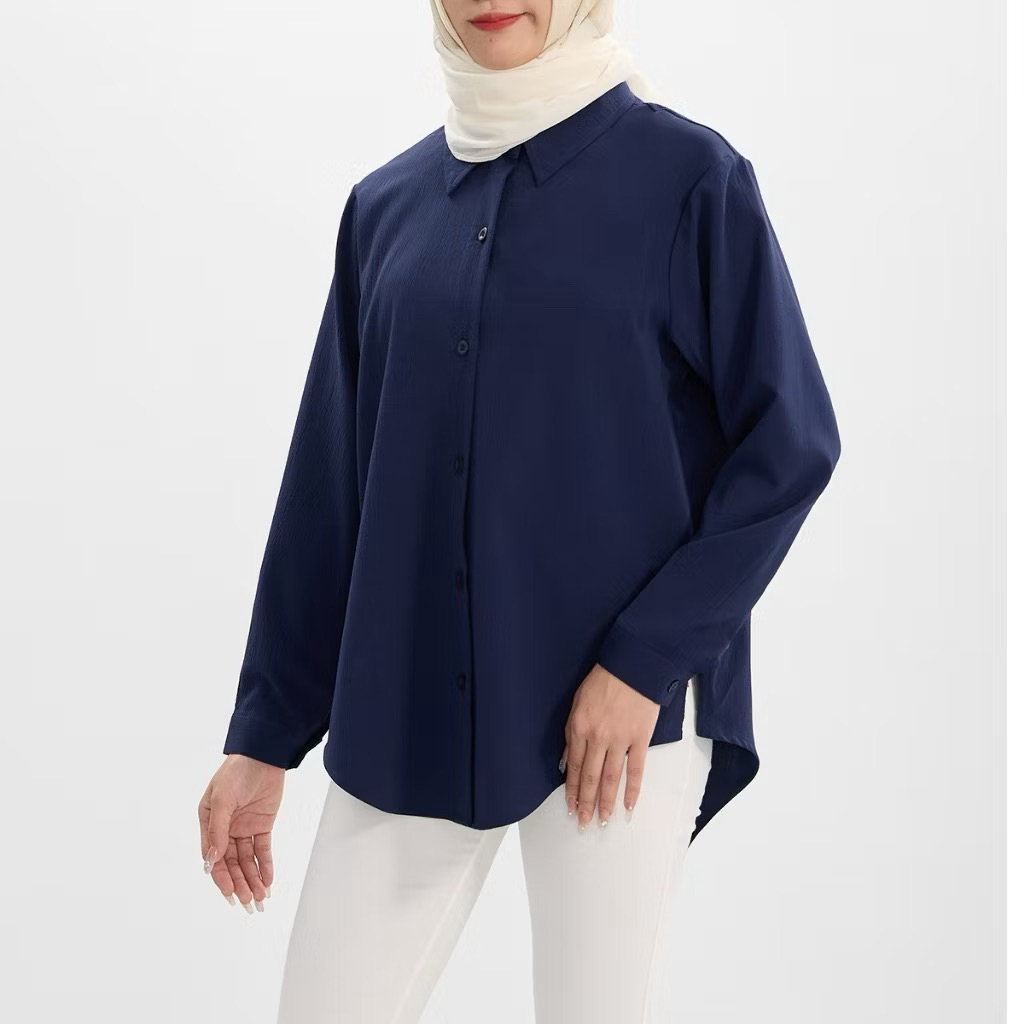 Muslim Baju kemeja perempuan kain Cotton Long sleeve S sampai 4XL.Slimfit
