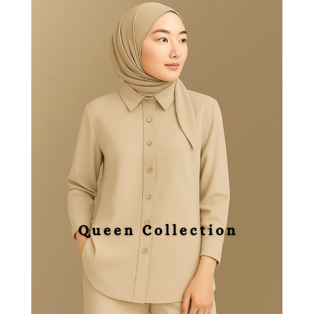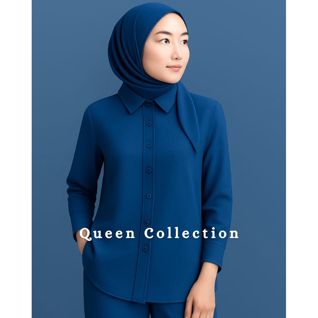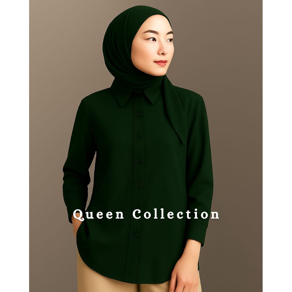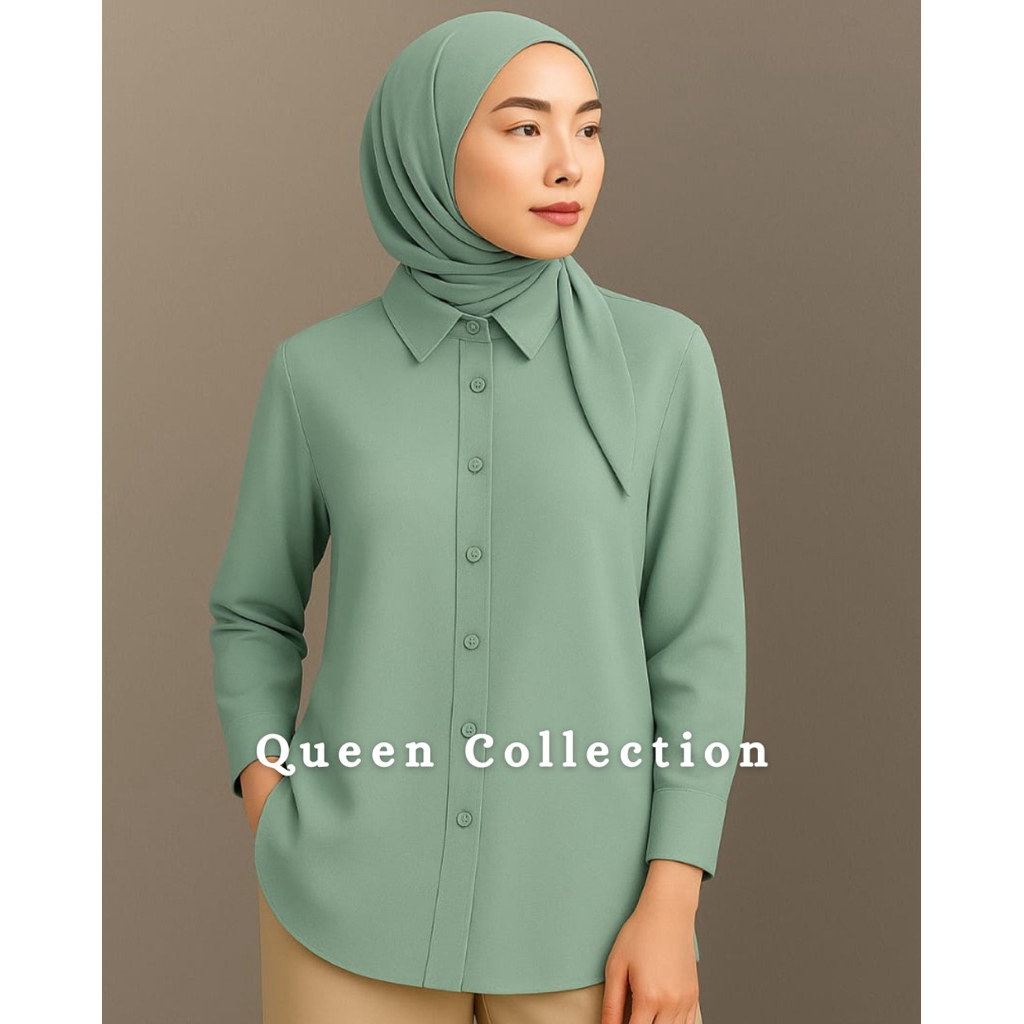 Muslim Baju kemeja perempuan kain Cotton Long sleeve S sampai 4XL.Slimfit