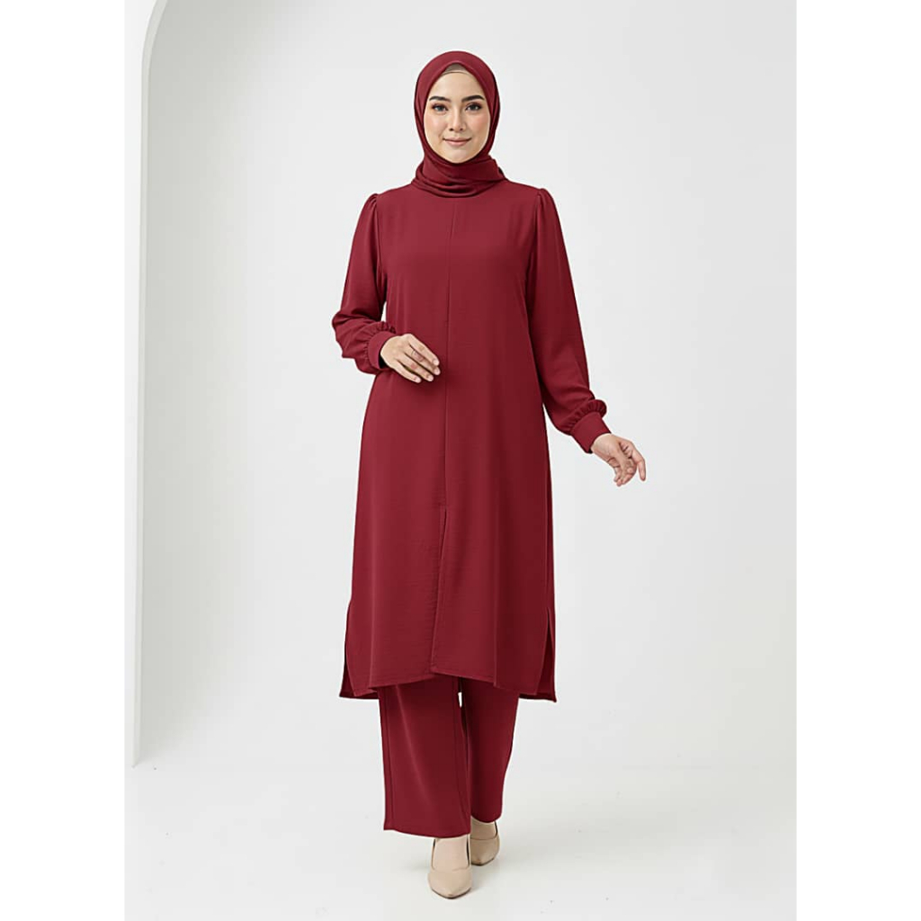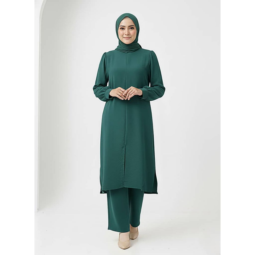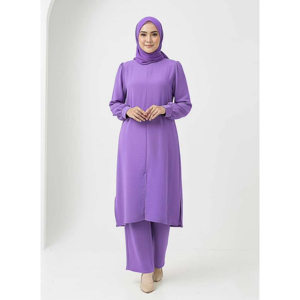Muslimah Wanita Suite Set Baju & Saluar Long Sleeve Tanggan Ada Zip Cey Ironless
