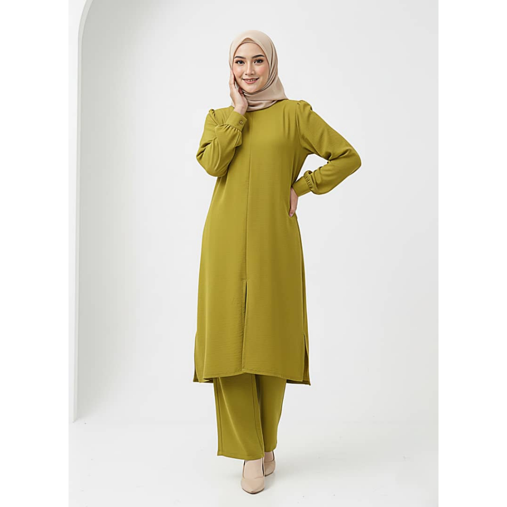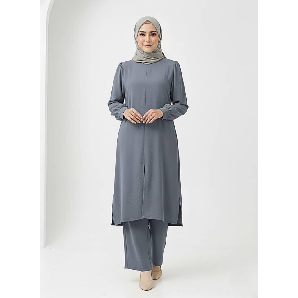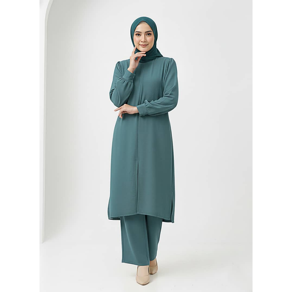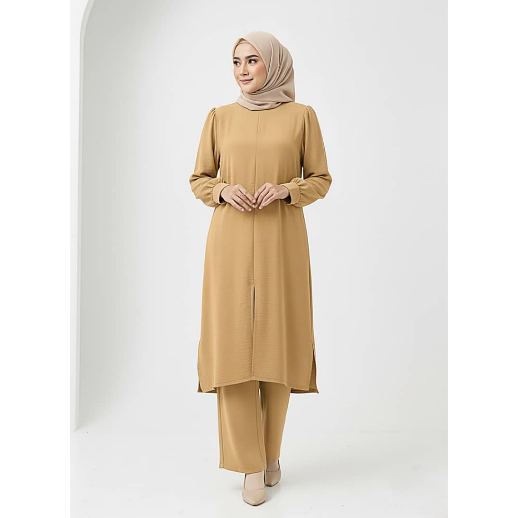 Muslimah Wanita Suite Set Baju & Saluar Long Sleeve Tanggan Ada Zip Cey Ironless
