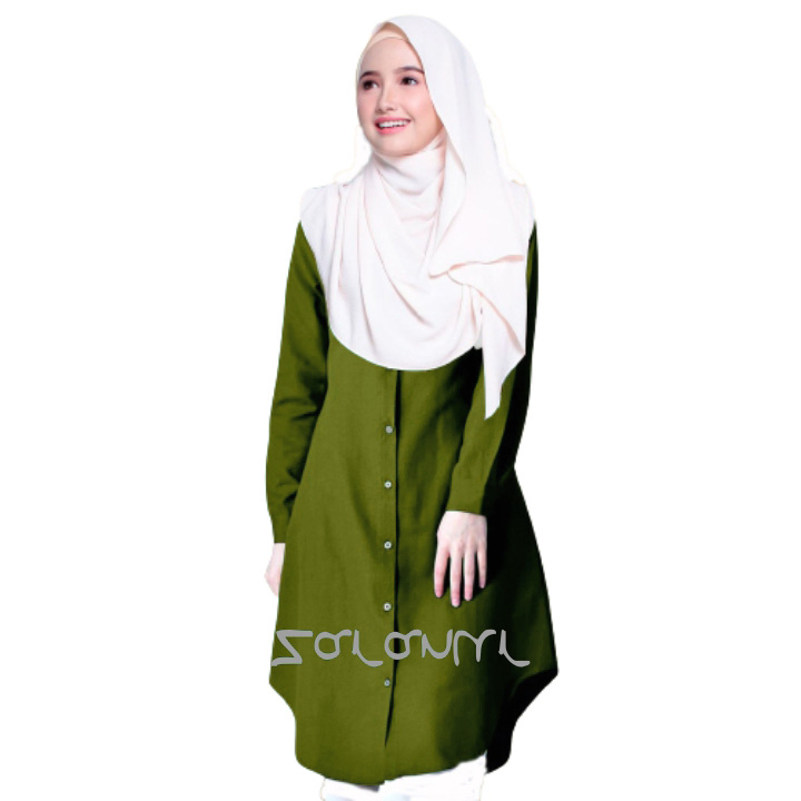Muslimah WanitaB Bloue LABUH Front Butto Style COMO CREPE (READY STOCK )