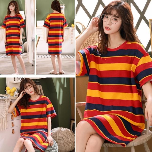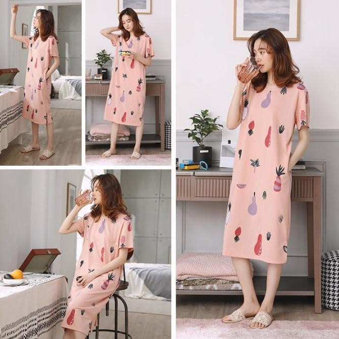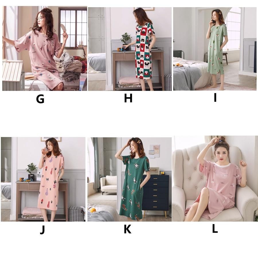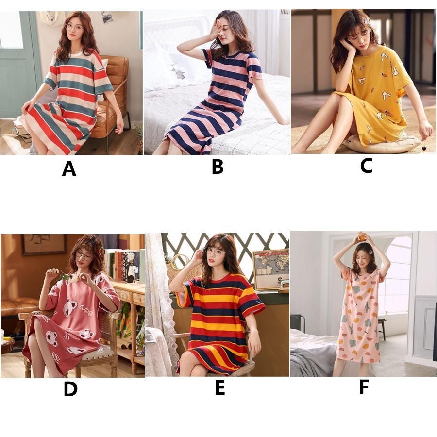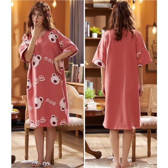 MYA-Pajamas Cartoon Print Round Neck Short Sleeve Loose Casual Knit Summer Night Gown T201