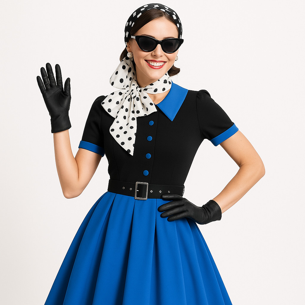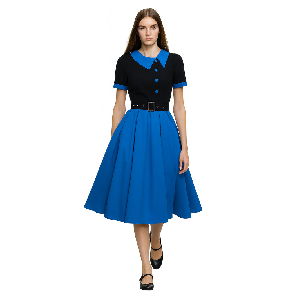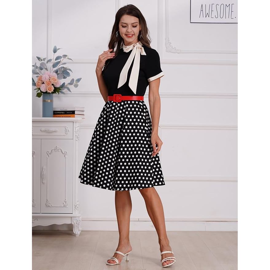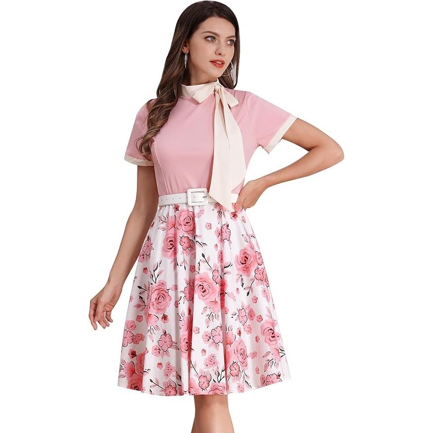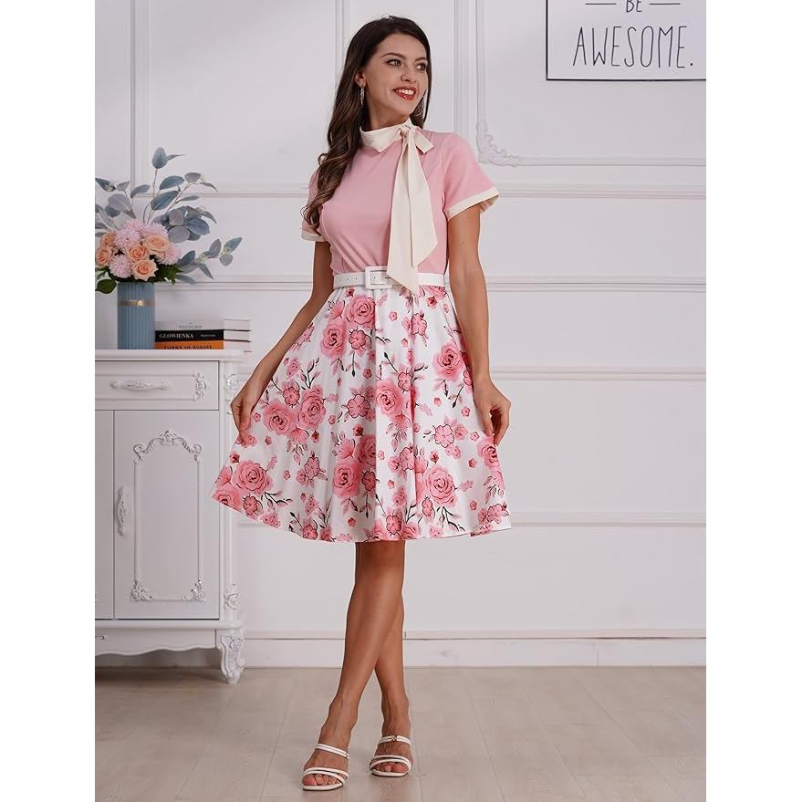 MYLITTLELASS Women’s Midi Dress 1920s Retro Style Vintage Print & Belt