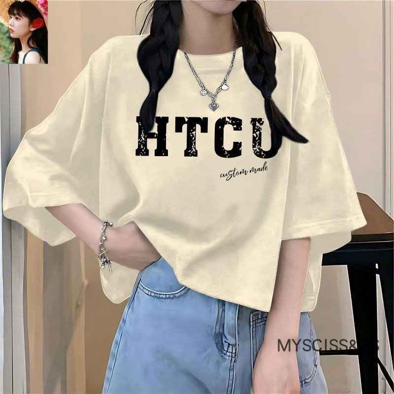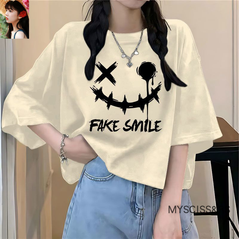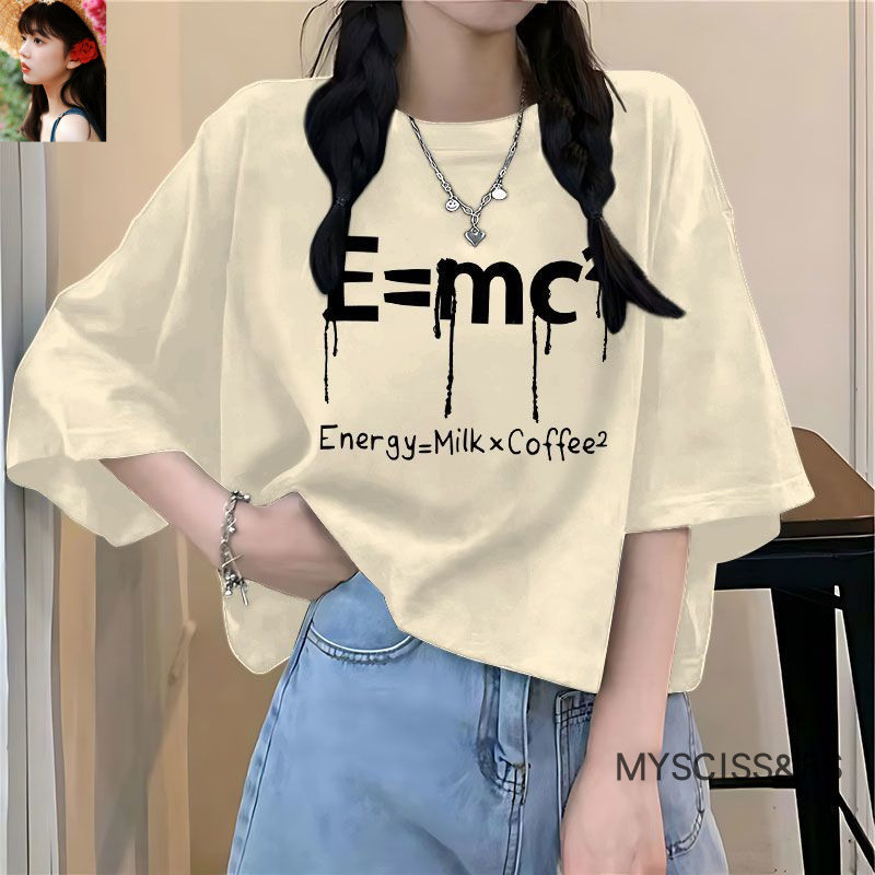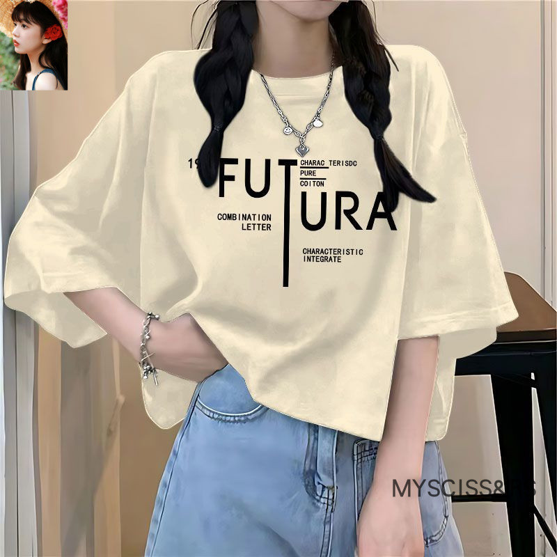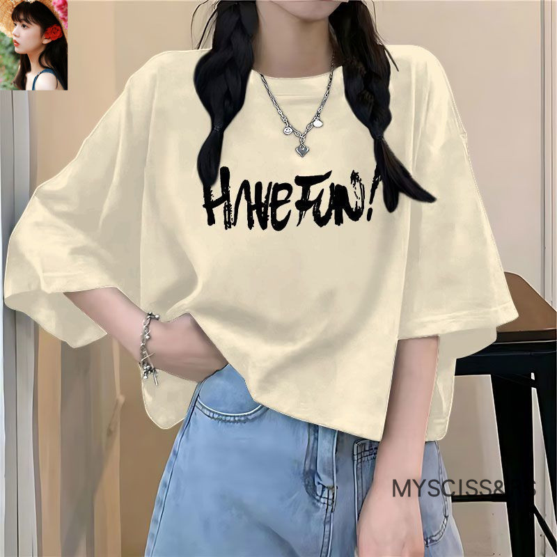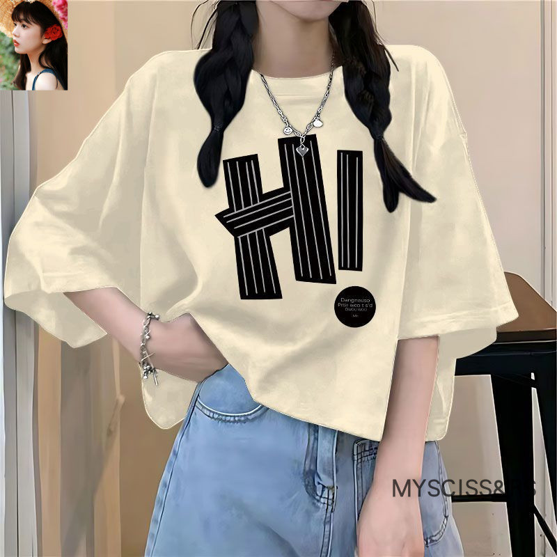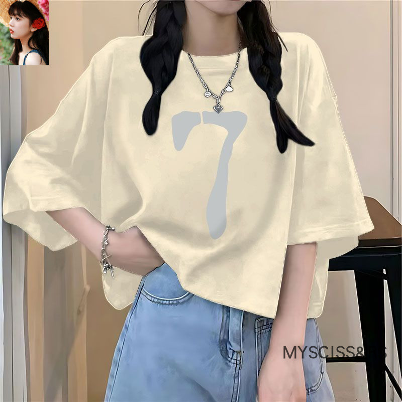 MYSCISSRS 甜美短袖ins印花2025新款不起球高腰短款时尚气质宽松T恤半袖上衣 Baju lengan pendek Plus size short sleeve T-shirt top