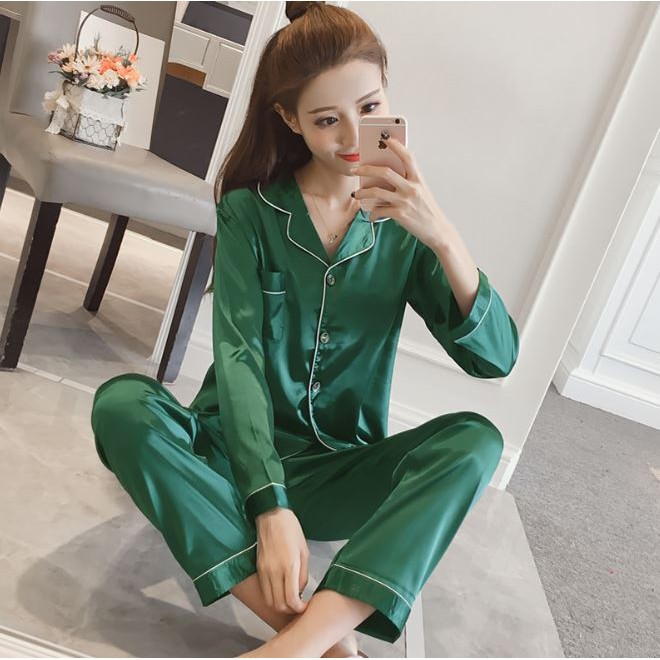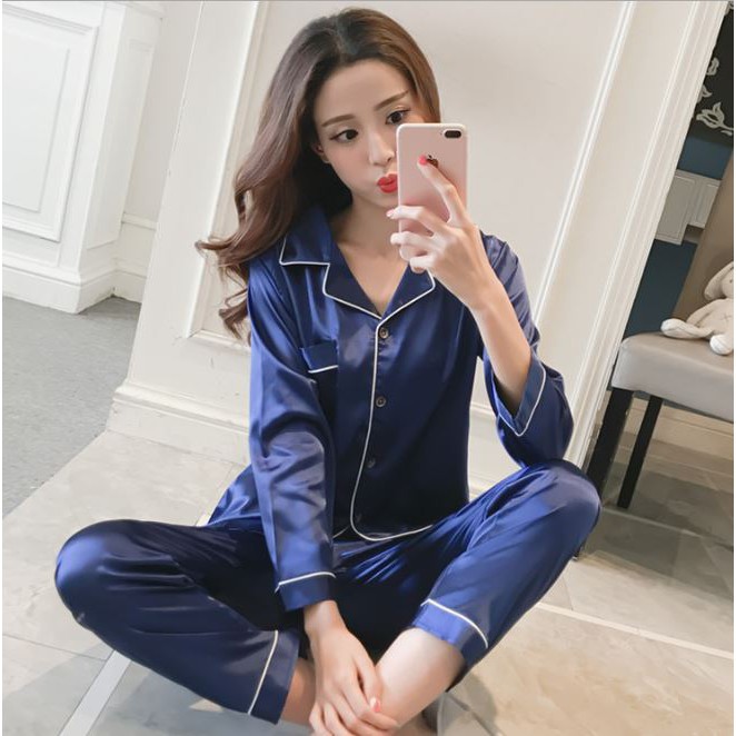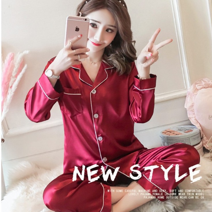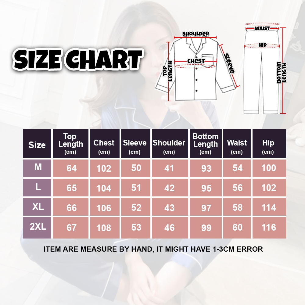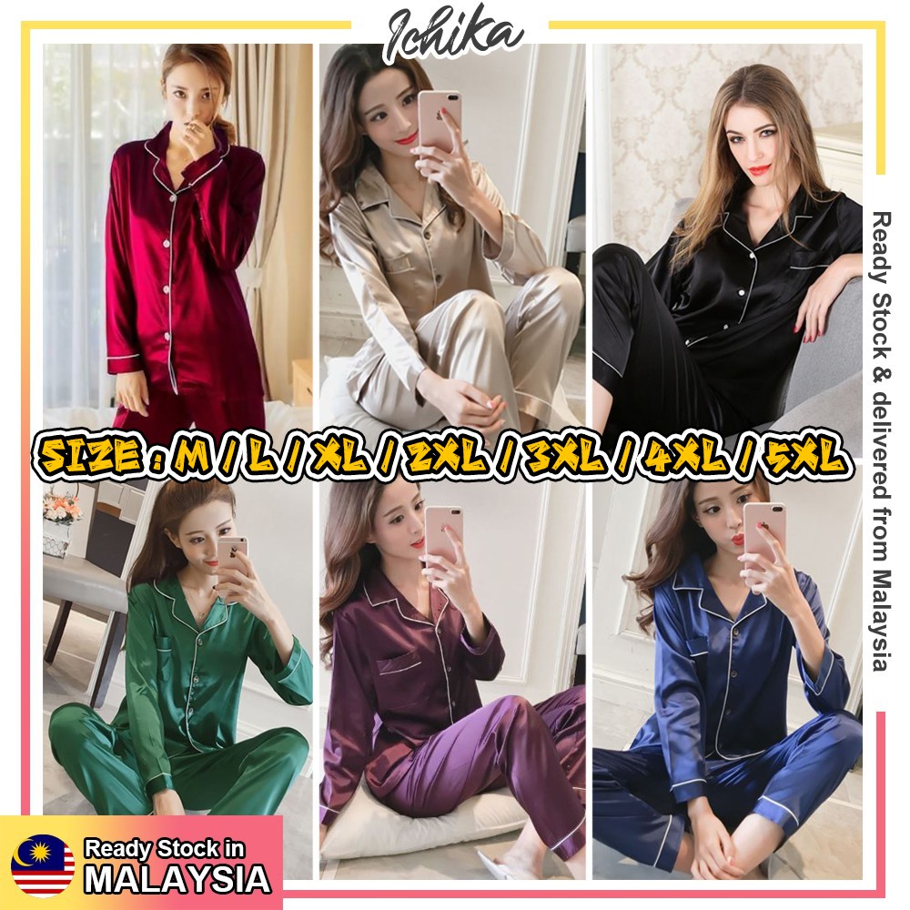 [MYSIA READY STOCK][M-2XL][PANDORA Silk Satin Pajamas Set Unisex Long Sleeve Sleepwear Baju Tidur wanita perempuan]