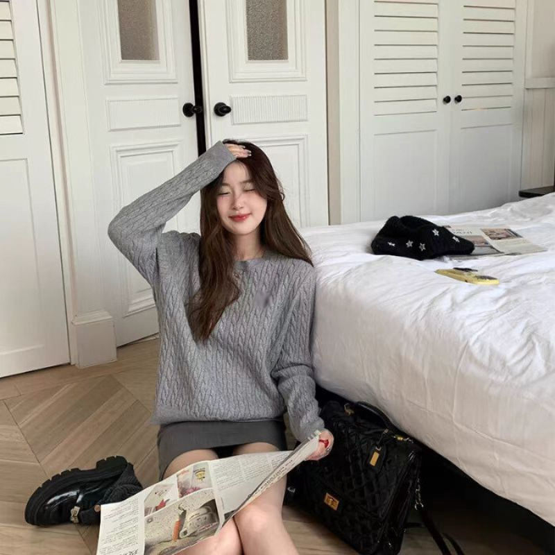 mysteryoffemale Korean Style Women Sweater Long Sleeve Round Neck Knitted Top Knitwear 长袖针织上衣毛衣 LT003