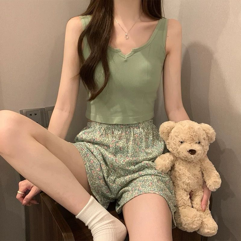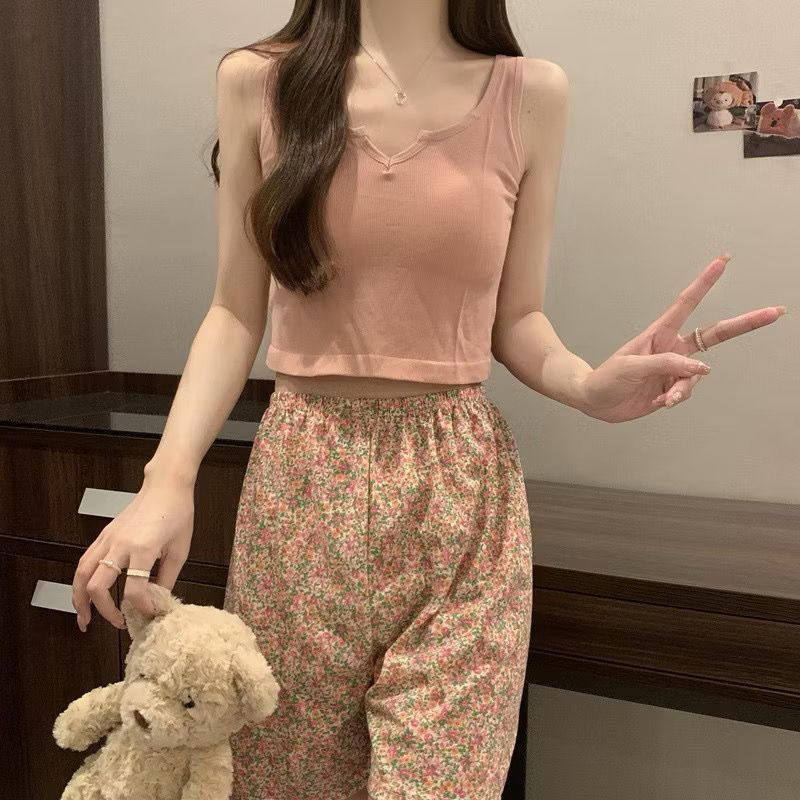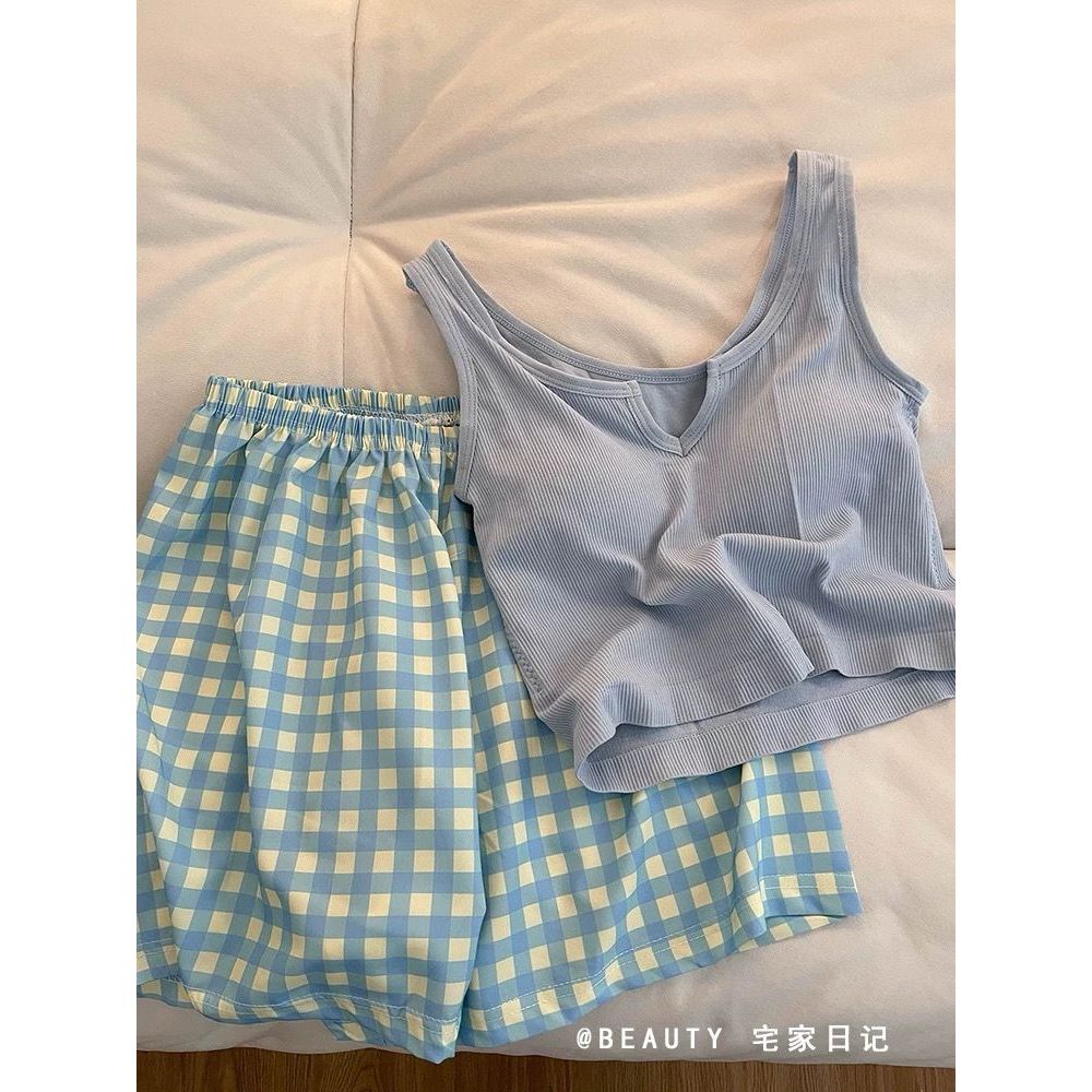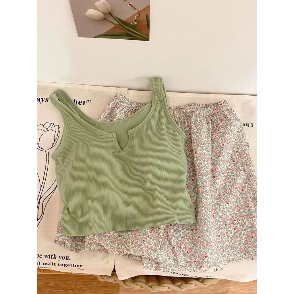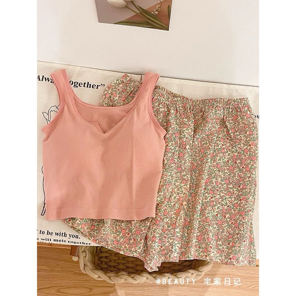 mysteryoffemale Women Padded Singlet Camisole Pants Set Sexy Pajamas Sleepwear Seluar Baju Tido Perempuan PS055 带胸垫家居睡衣