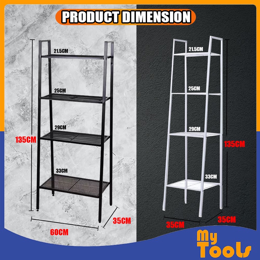 Mytools 4 Tiers Wall Leaning Shelf Rack Bookshelf Storage Organizer for Office Home Bedroom