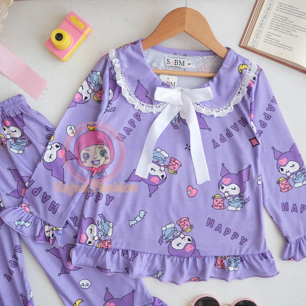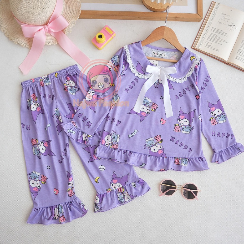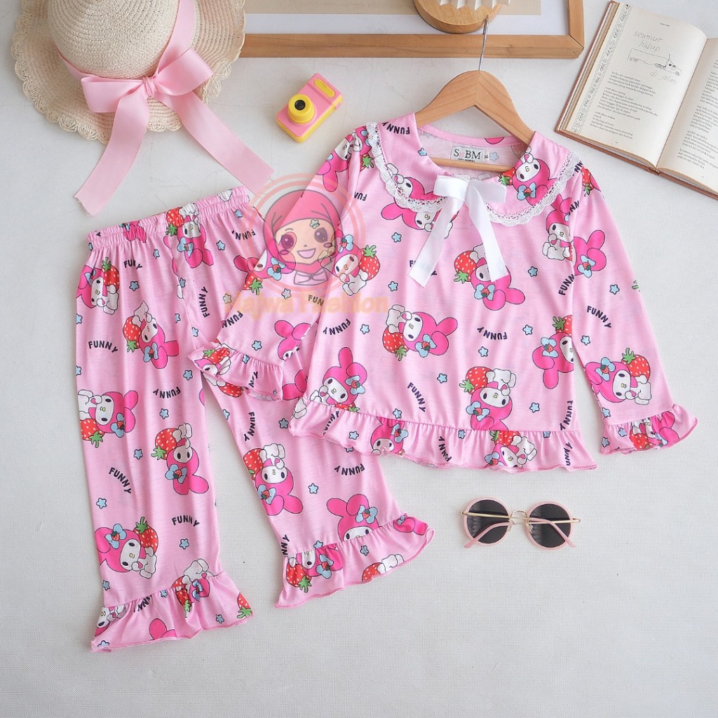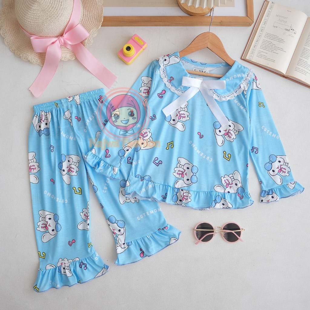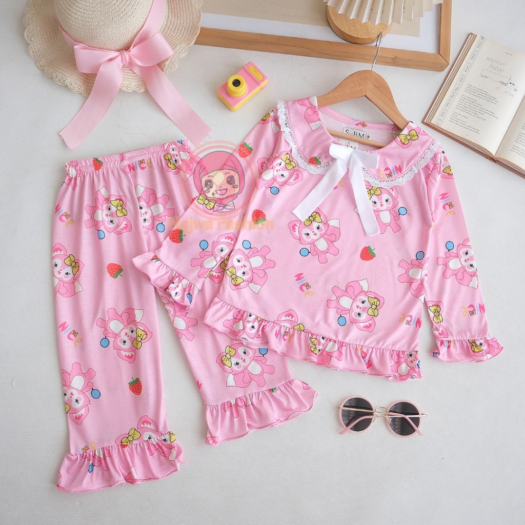 NAJWA - Sasmi Children's Pajama Set with Cute Cartoon Motifs Latest Fashion Oneset Ribbon Sleepwear for Girls