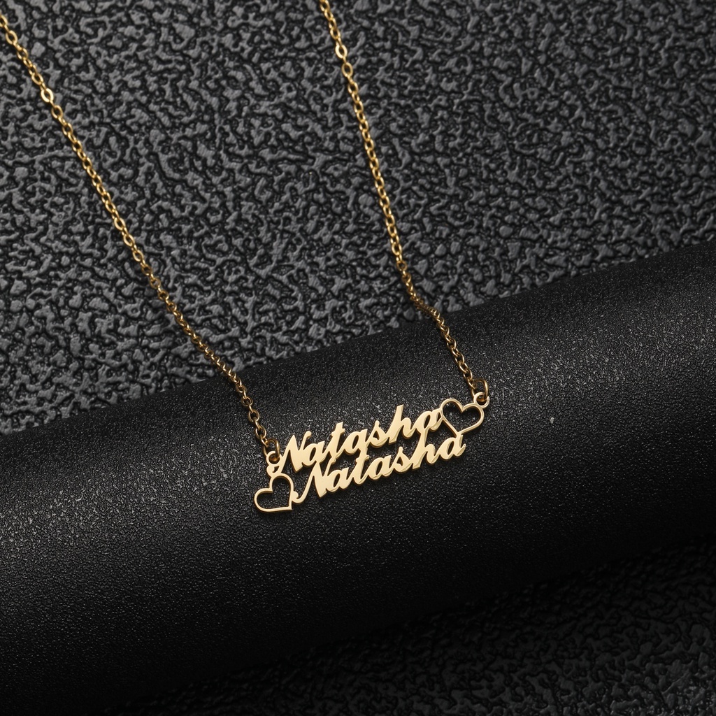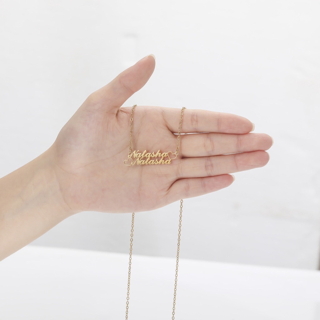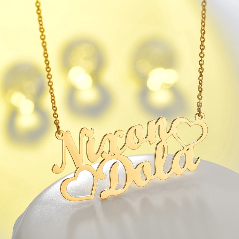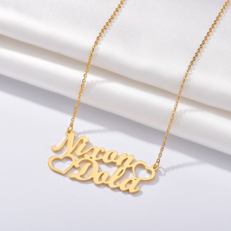 【Name Custom Necklace】Haokai Fashion Custom Stainless Steel 2 Name Heart Necklace Personalized Letter Choker Necklace Gift