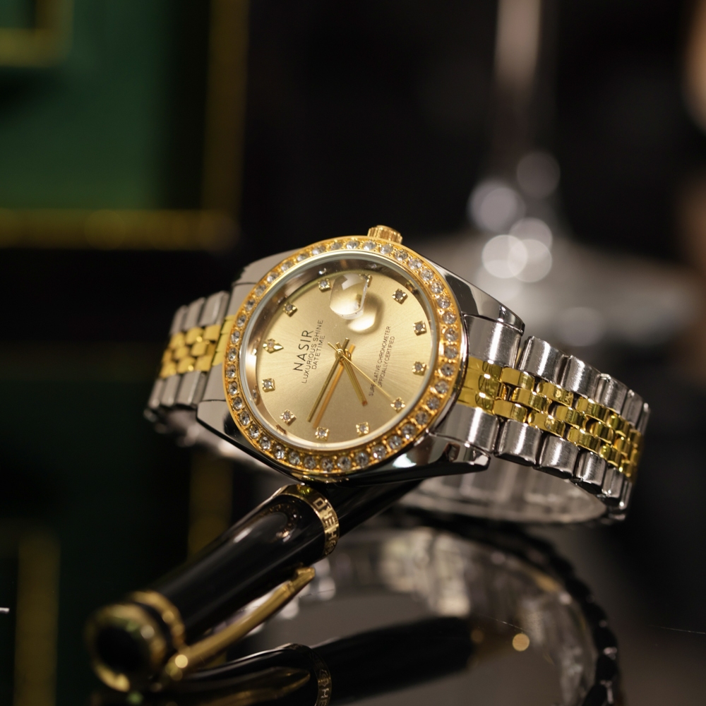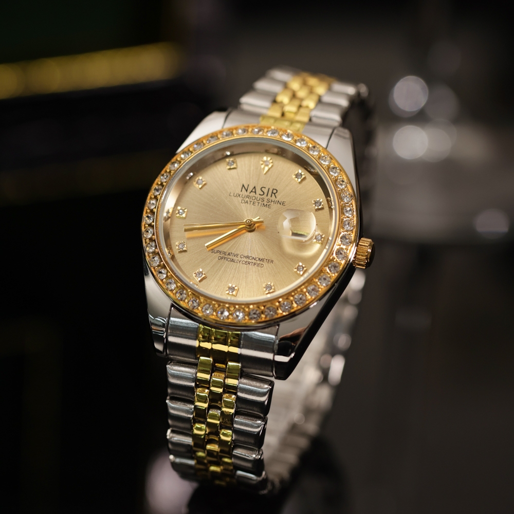 NASIR Light Luxury Workplace Hollow Mechanical Style Diamond Calendar High-End Watch [826]