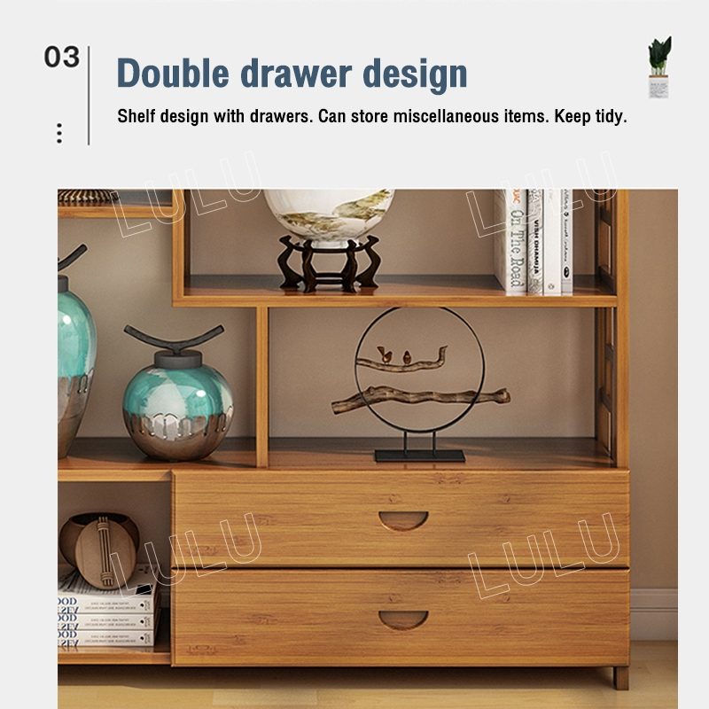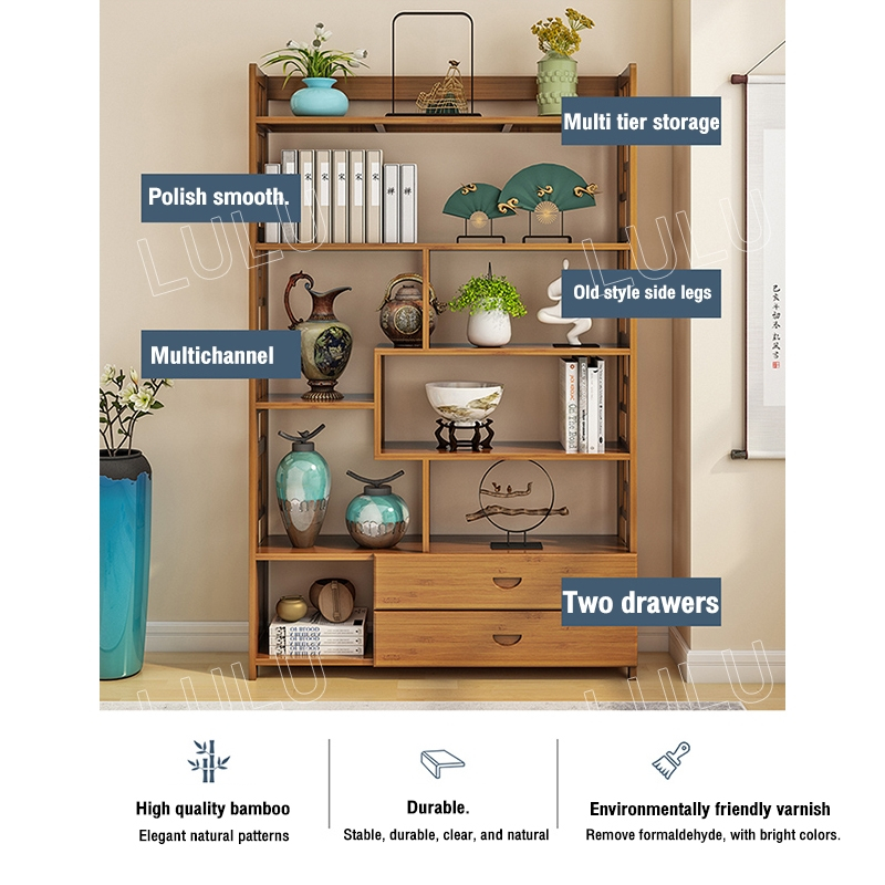Natural Bamboo Brown Shelf Rack With Drawer Rak Serbaguna Bamboo Shelf Wooden Home Storage Rack Living Room Rack