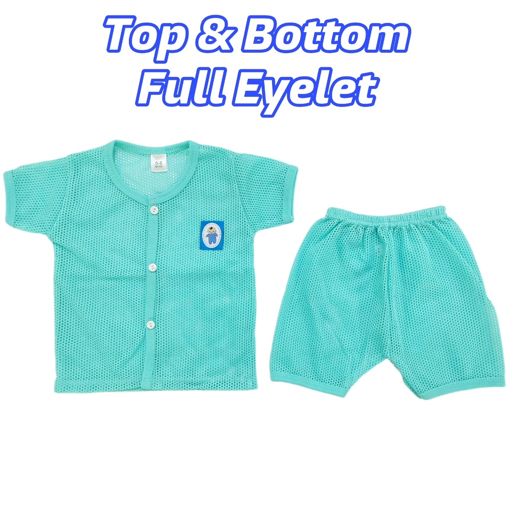 NCH Baju Berlubang Baby Boy Girl Newborn Eyelet Baby Cloth Baju Eyelet Baby Tangan Pendek Seluar Pendek Pakaian Harian