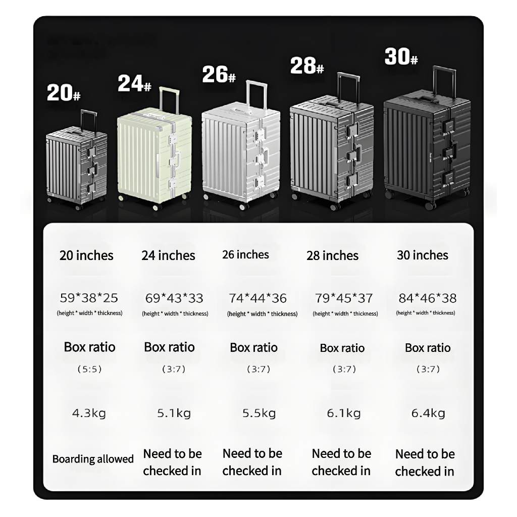 New 100% Aluminum Frame Suitcase Luggage with TSA Lock Hard Suitcase 20/24/26/28/30 inch 行李箱