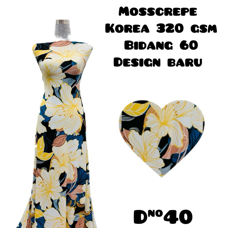 new arrivals kain pasang lycra Mosscrepe printed 3D /bidang 60/320 gms Korea