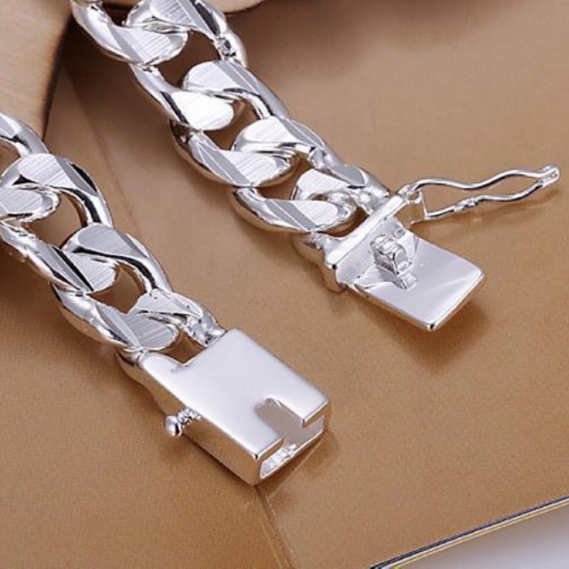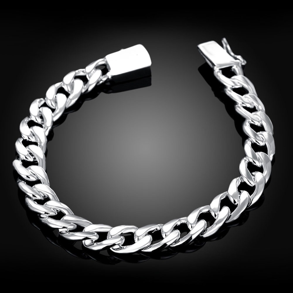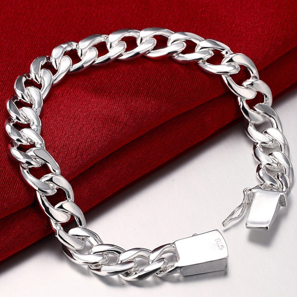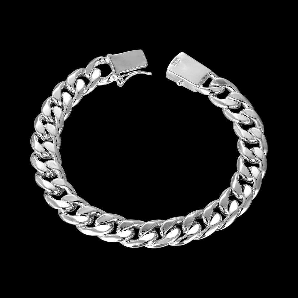 New Fashion Jewelry 925 Sterling Silver 10 mm Square Buckle Sideways Chain Bracelet For Unisex Man Women Gift