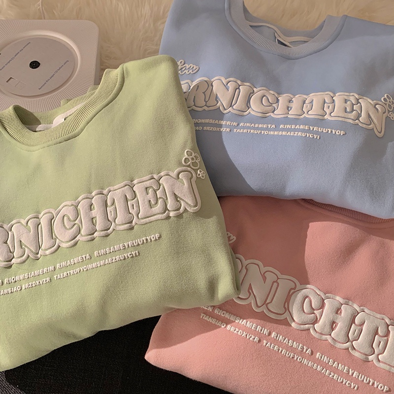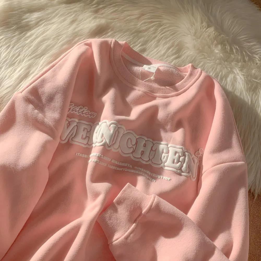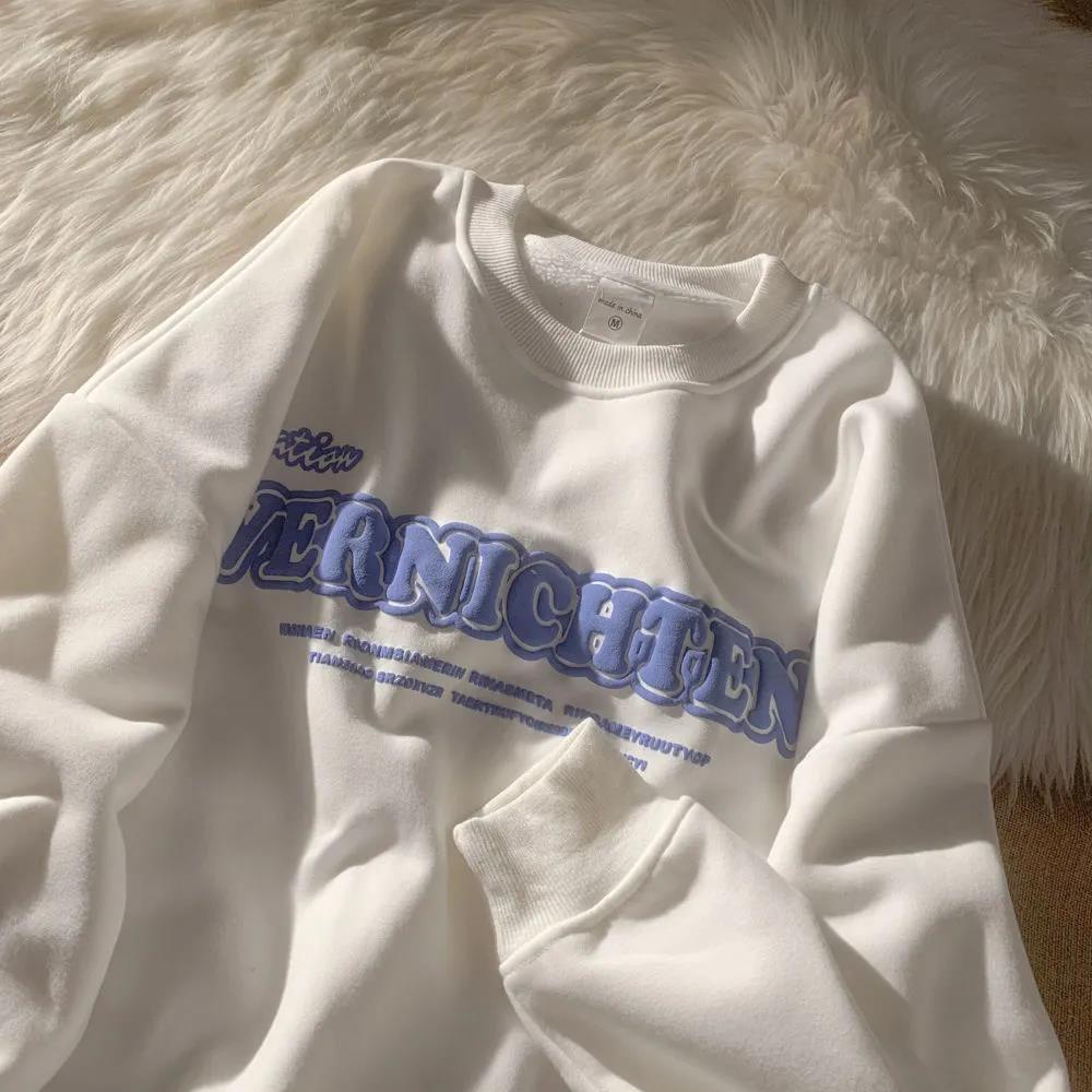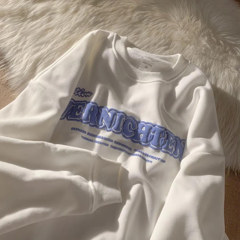 New Fat MM Oversize Letter Element Print Sweatshirts Women Girls Vintage Japanese BF Ins Stylish Pullover Sweater Tops