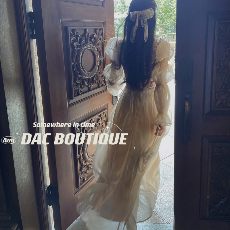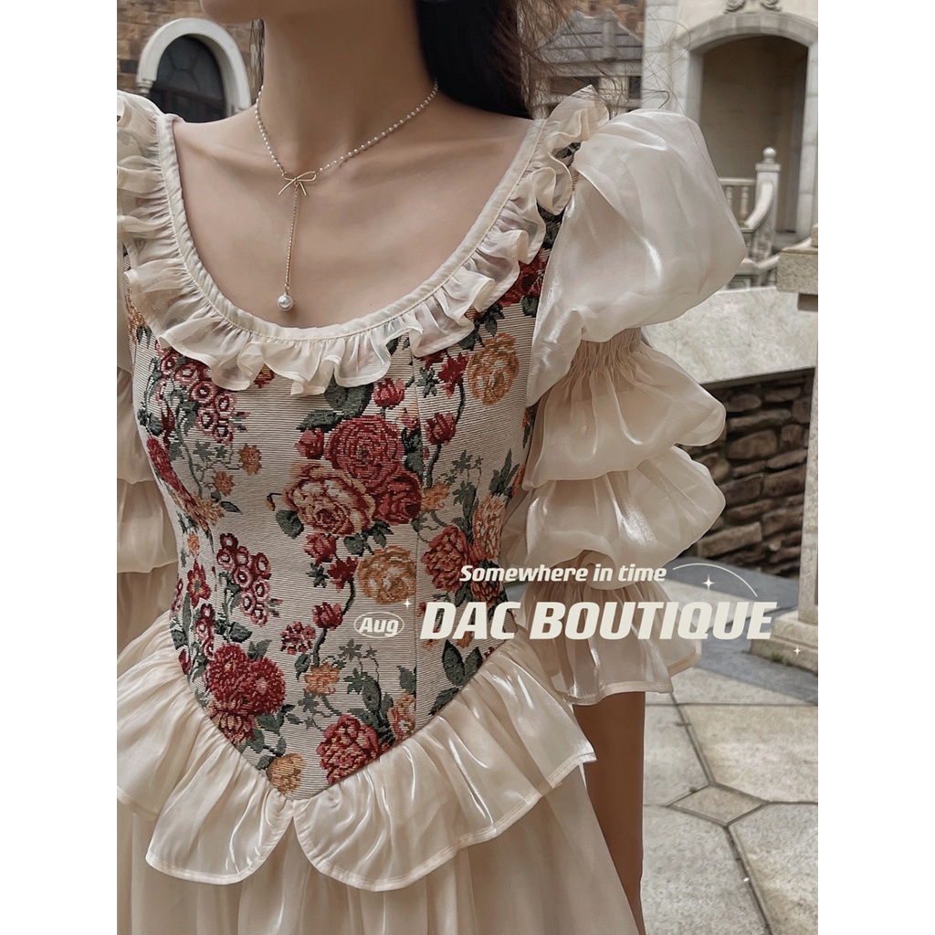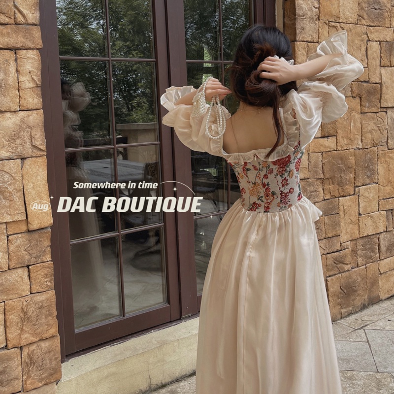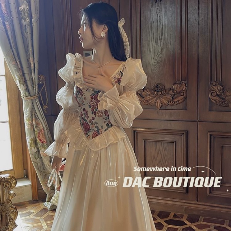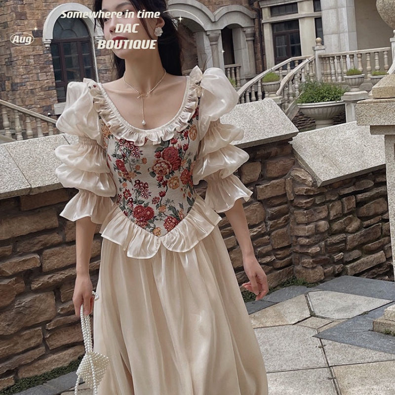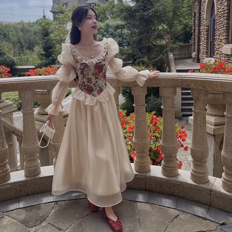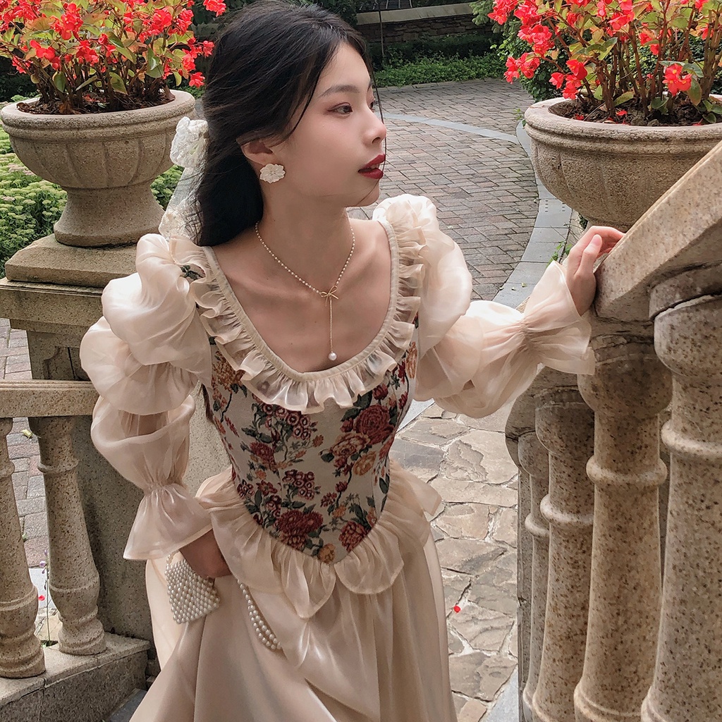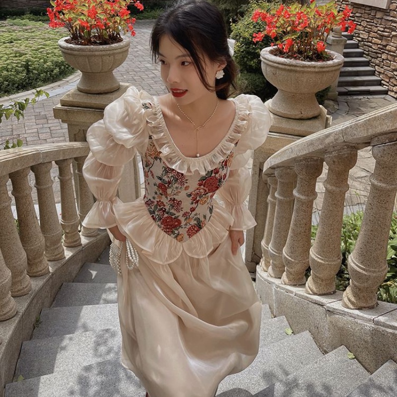 New French Retro Court Style Round Neck Bubble Long Sleeved Princess Dress Fairy