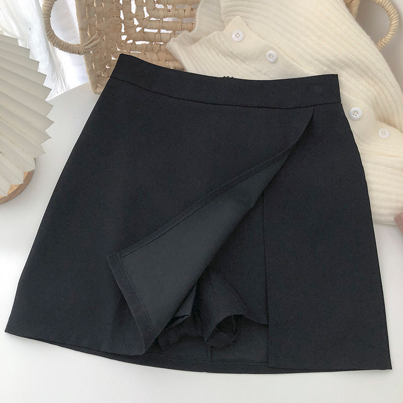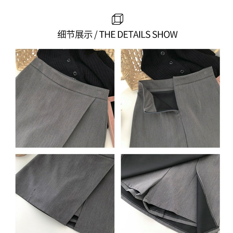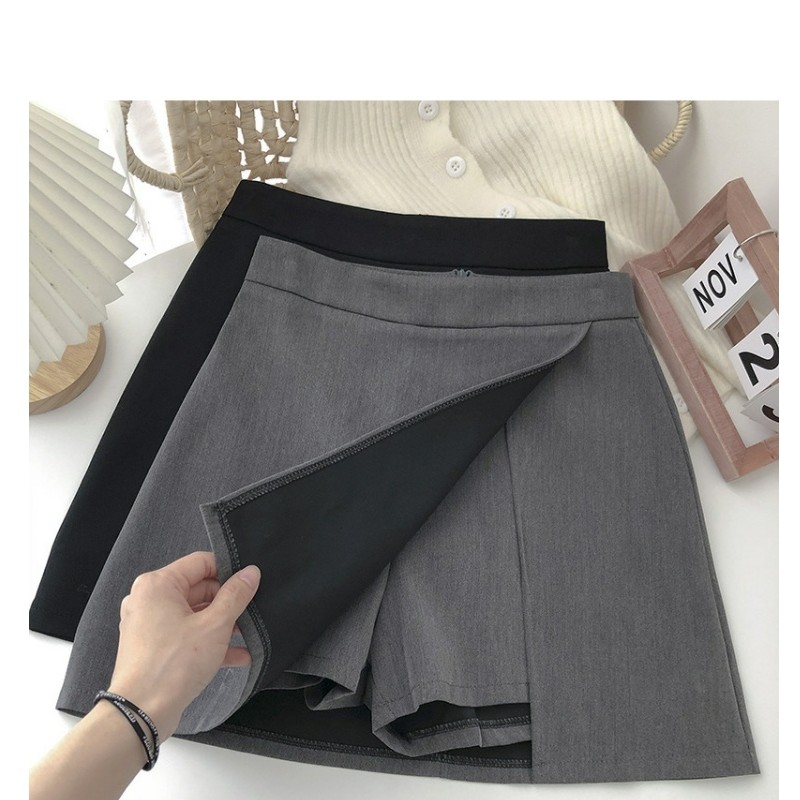 顯瘦 純色 闊腿 裙褲女 New high waisted anti glare design a A-line skirt 不规则高腰防走光A字裙女春夏装韩版复古百搭显瘦纯色阔腿裙裤 Irregular High Waist Anti-Glare A-Line Skirt - Stylish & Slimming for Women's Spring/Summer Wardrobe