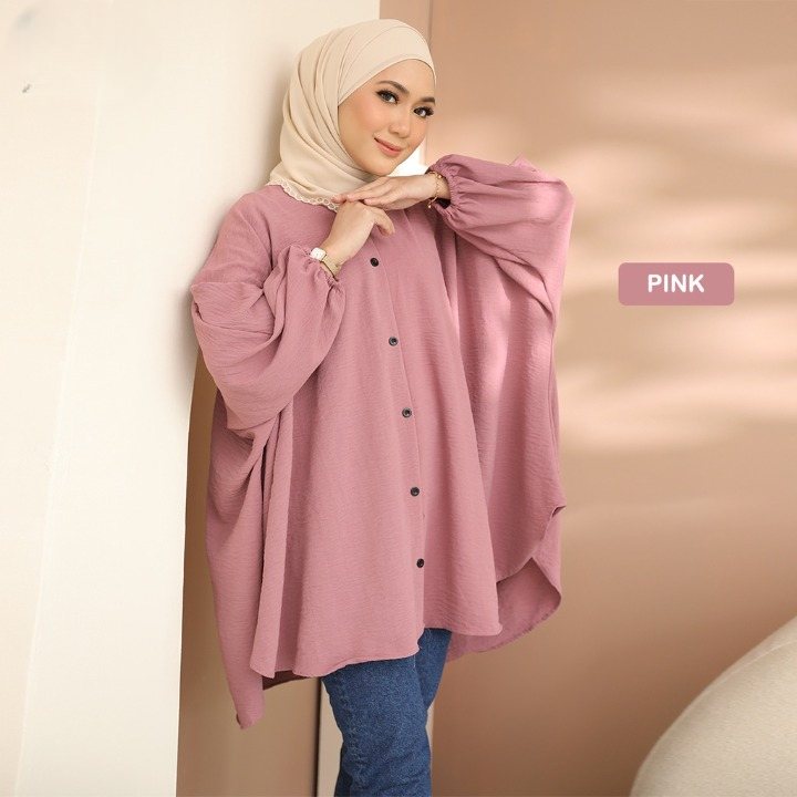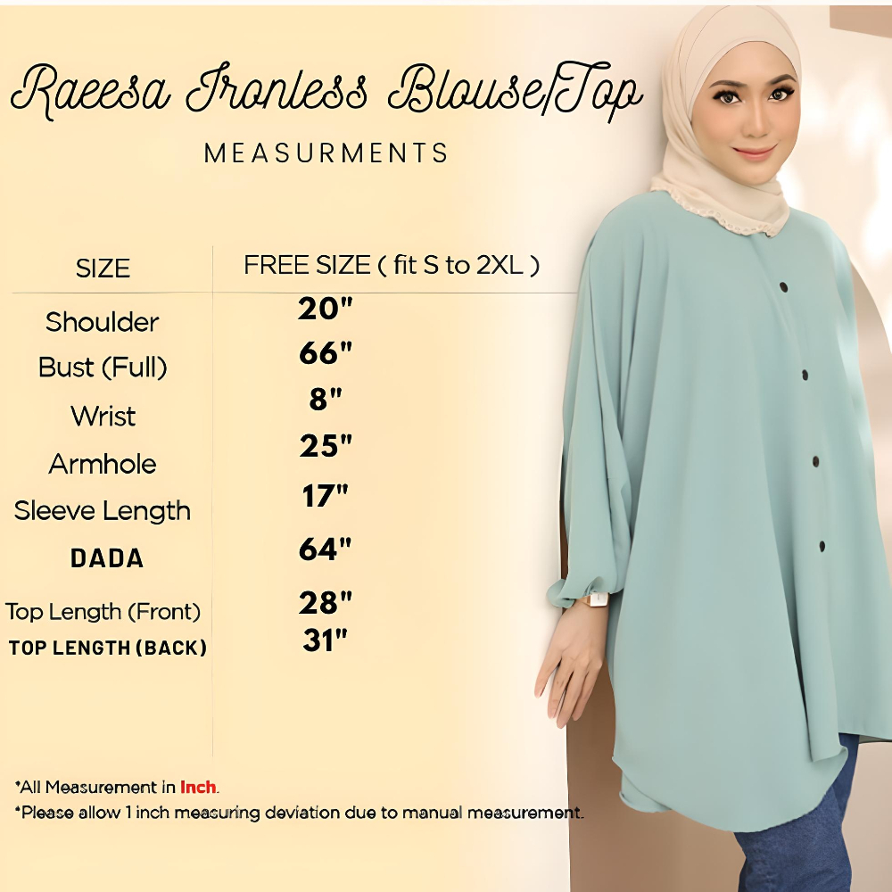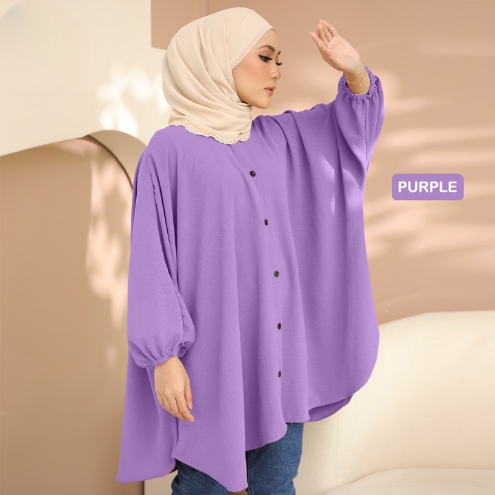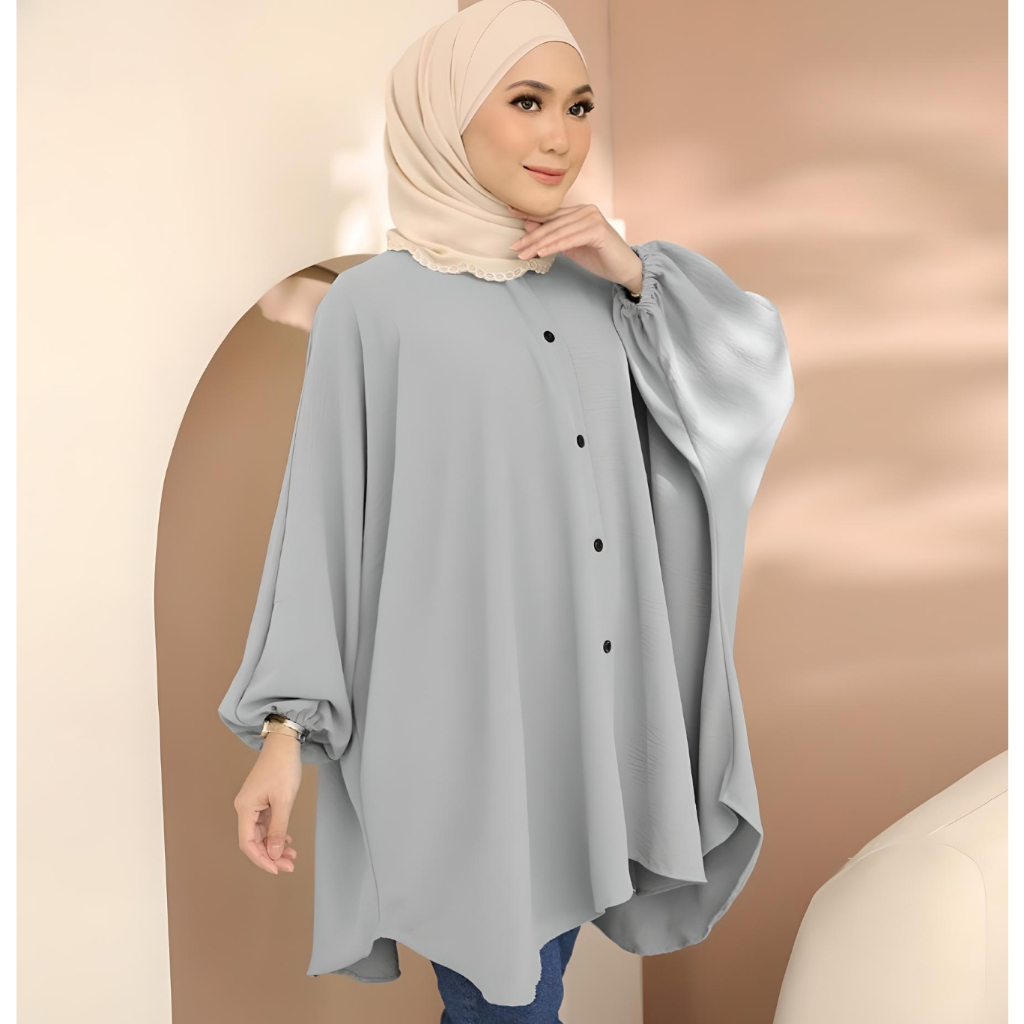 New Korean Blouse Women Ironless Baggy Blouse Buttons Muslimah Blouse Plus Size Loose Shirt