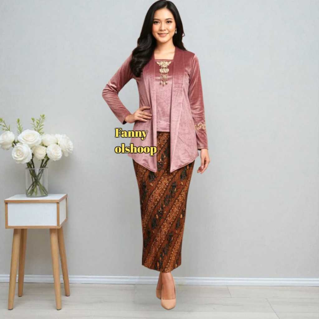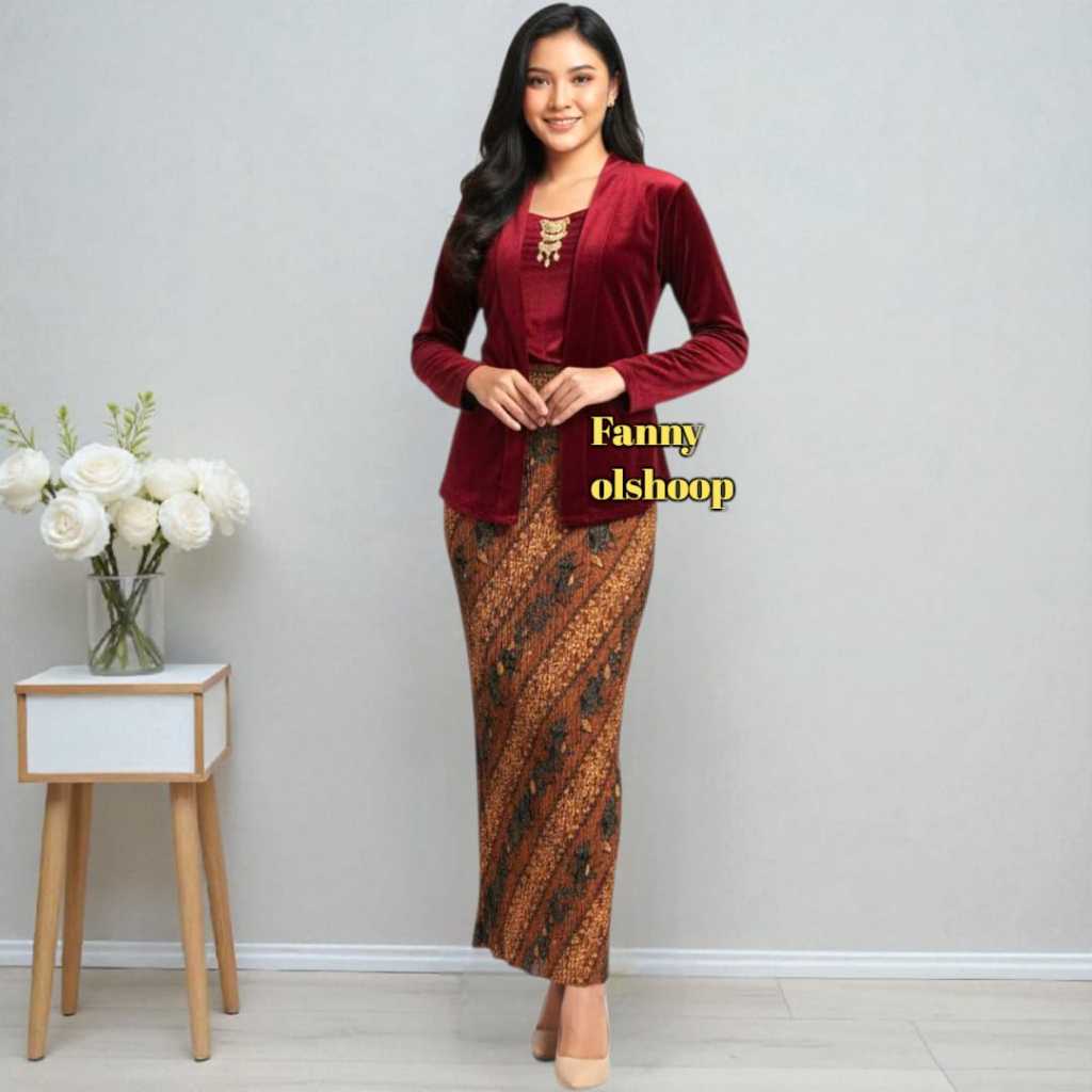 NEW KUTU VELVET KEBAYA SET (Skirt + kebaya) TRADITIONAL INDONESIAN SET with Javanese pleats