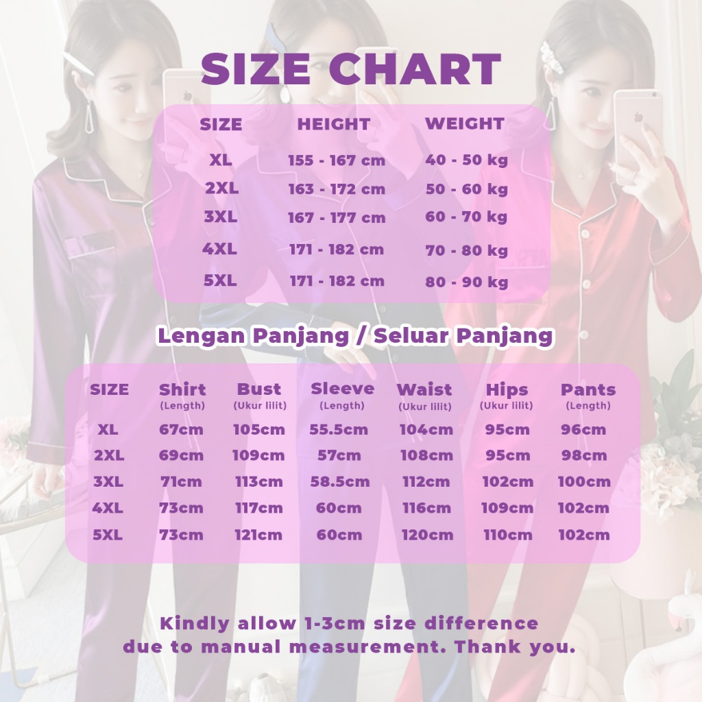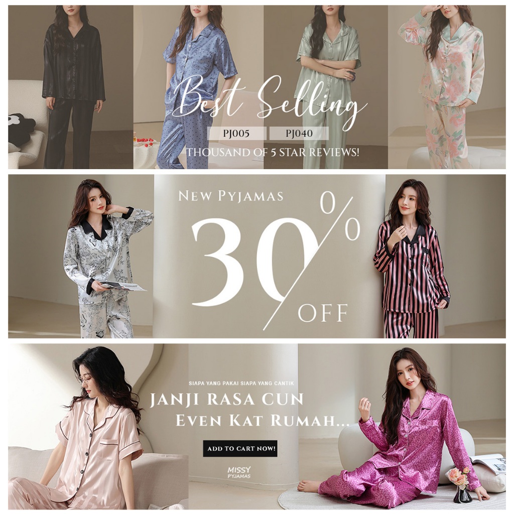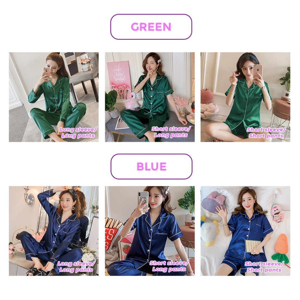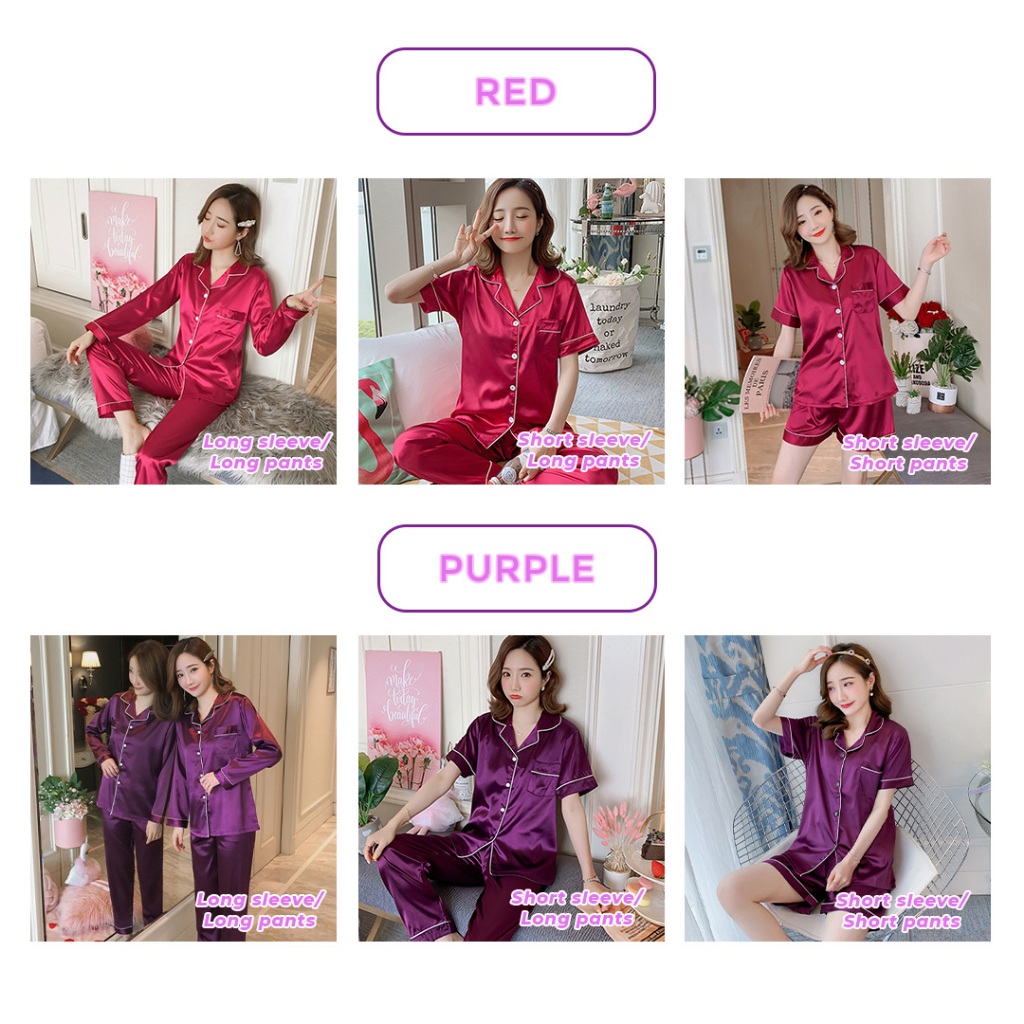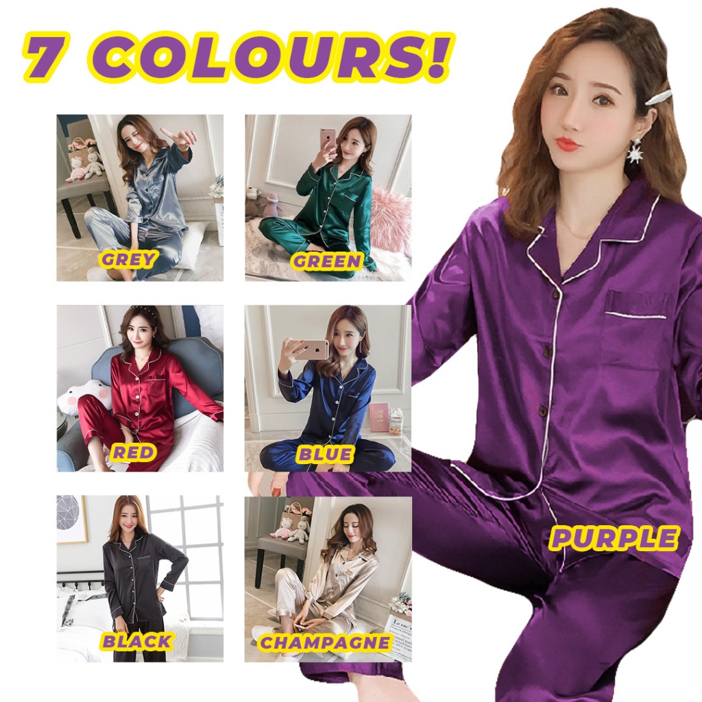【NEW】Missy Pyjamas Baju Tidur Ice Silk Wanita Homewear Set Seluar Panjang Selesa Perempuan Long Sleeve Sejuk PJ034