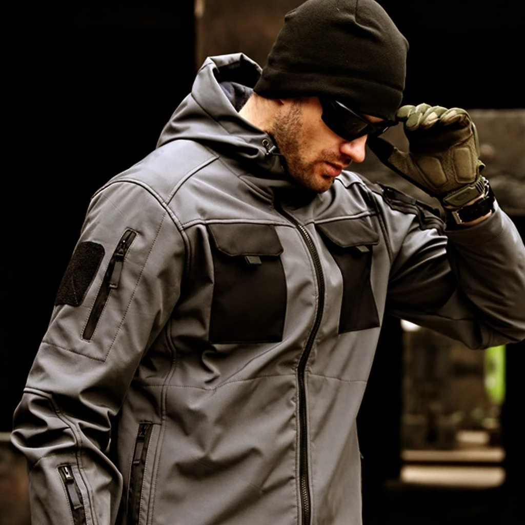 New Sharkskin Soft Shell Hooded Jacket Windproof Waterproof Camping Hiking Hunting Jacket Stretch Fleece Sportswear