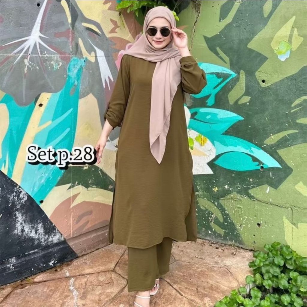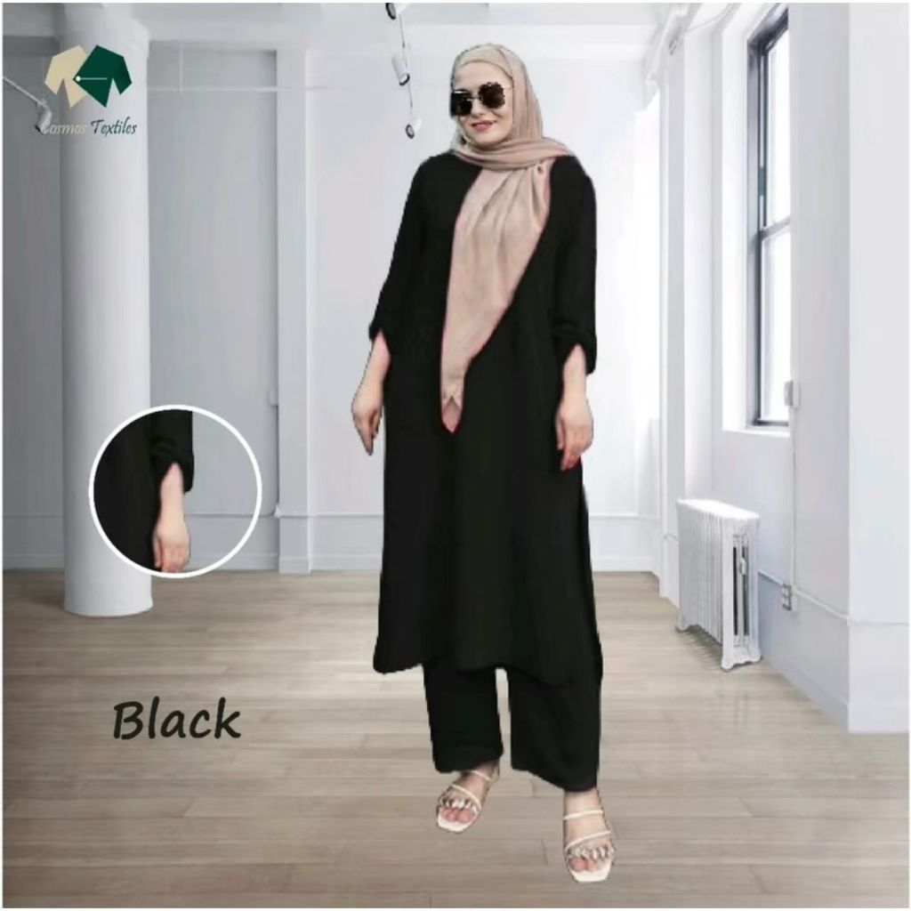 New Suit Set Muslimah (Seluar Palazo) Kain CEY IRONLESS PLAIN Wanita
