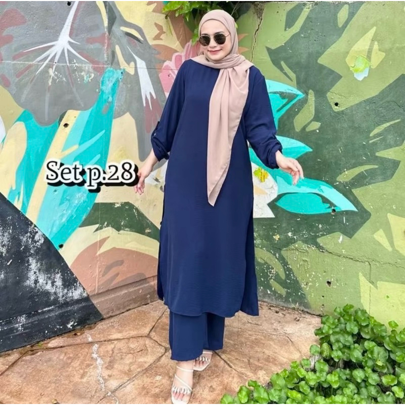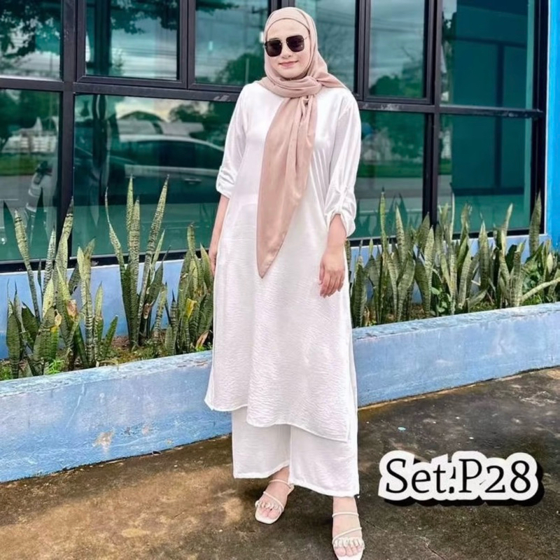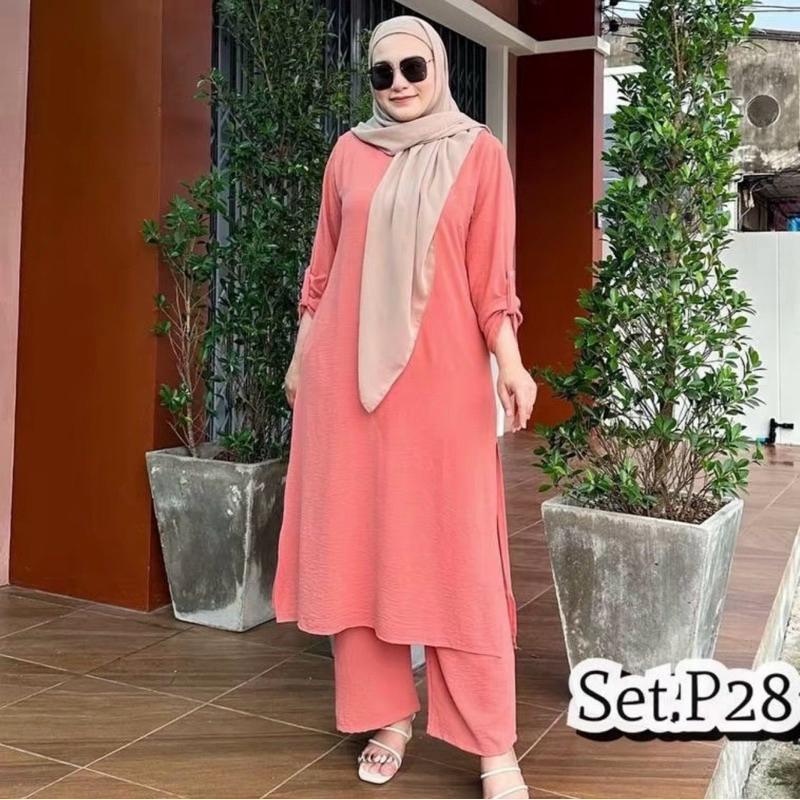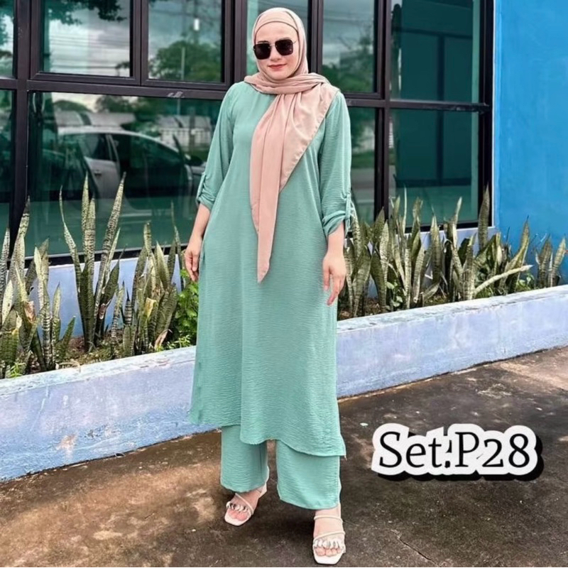 New Suit Set Muslimah (Seluar Palazo) Kain CEY IRONLESS PLIAN Wanita tiada butung lengan