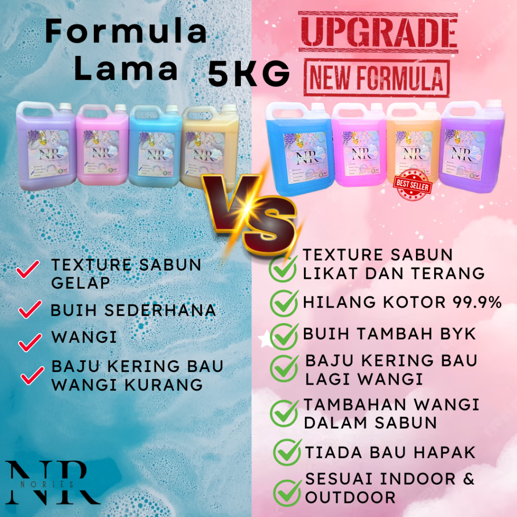 NEW Upgrade Formula Sabun Dobi Pewangi Nories 5kg DIRECT KILANG (Laundry Detergent) Ready Stock Janji Bersih, Berbuih