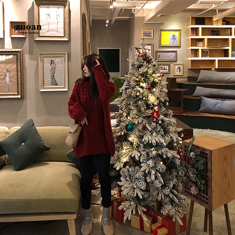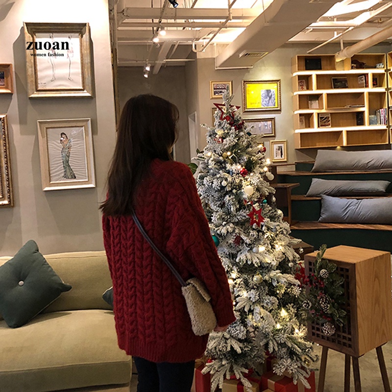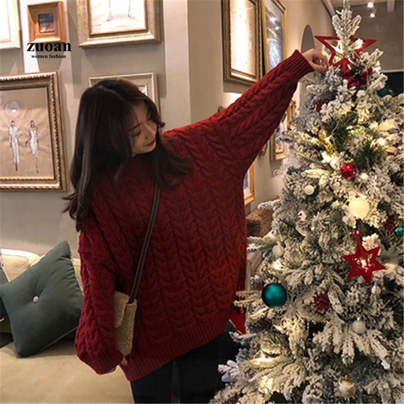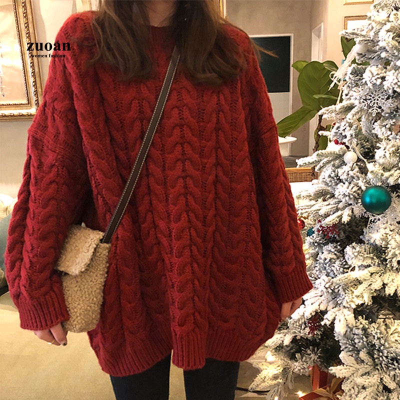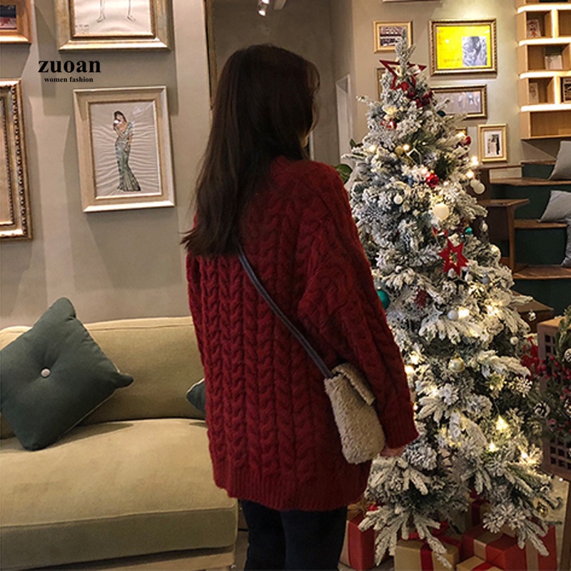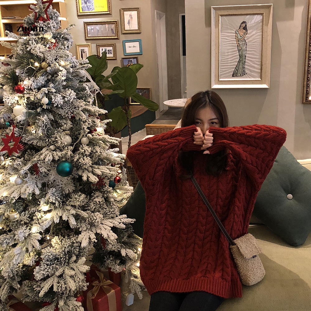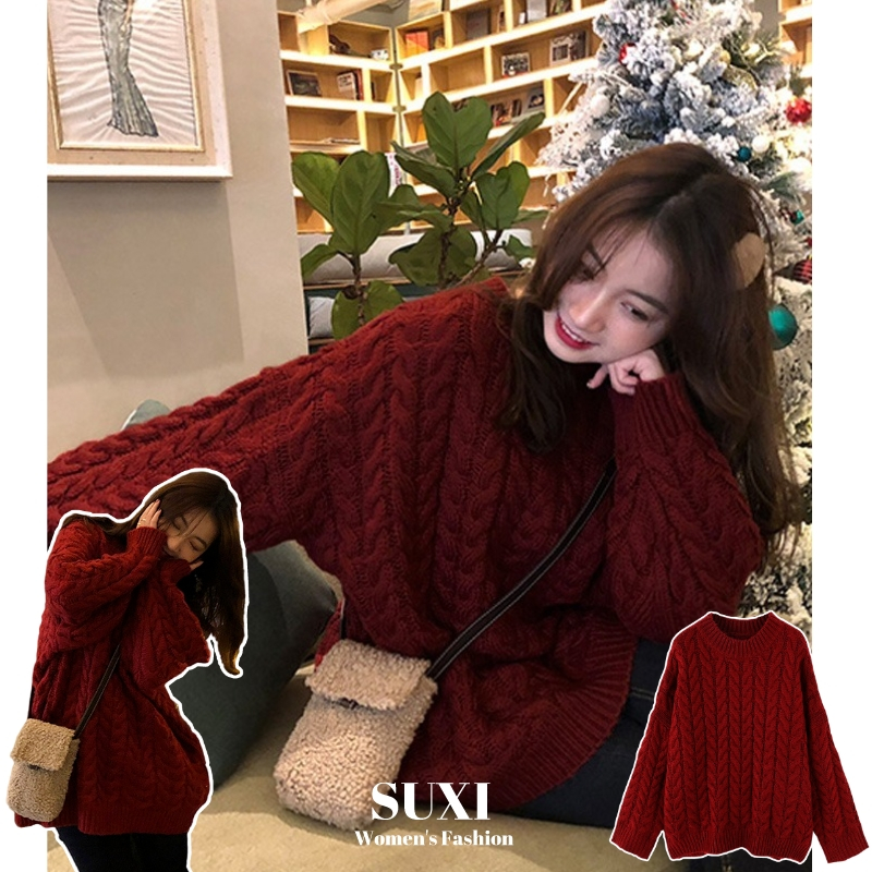 New Year Red Sweater Korean Round Neck Loose Sweater Knitted Long Sleeve Sweater Tops