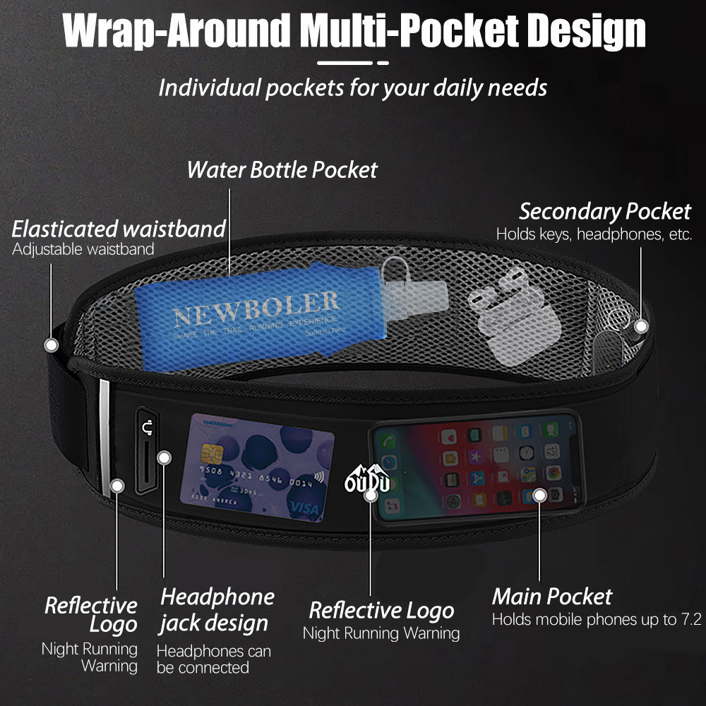 NEWBOLER Outdoor Running Belt With Soft Water Bottle Running Bag Female Waist Bag Male Fitness Mountaineering Marathon Accessories