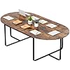 Nightcore 8 FT Oval Conference Table, 95" x 48" x 30" Large Meeting Table with Cable Holes and Strong Metal Frame for Office, Business Style Training Table for 12 People, Rustic Brown & Black
