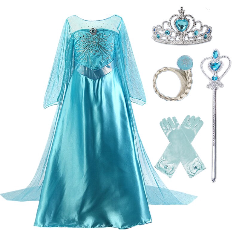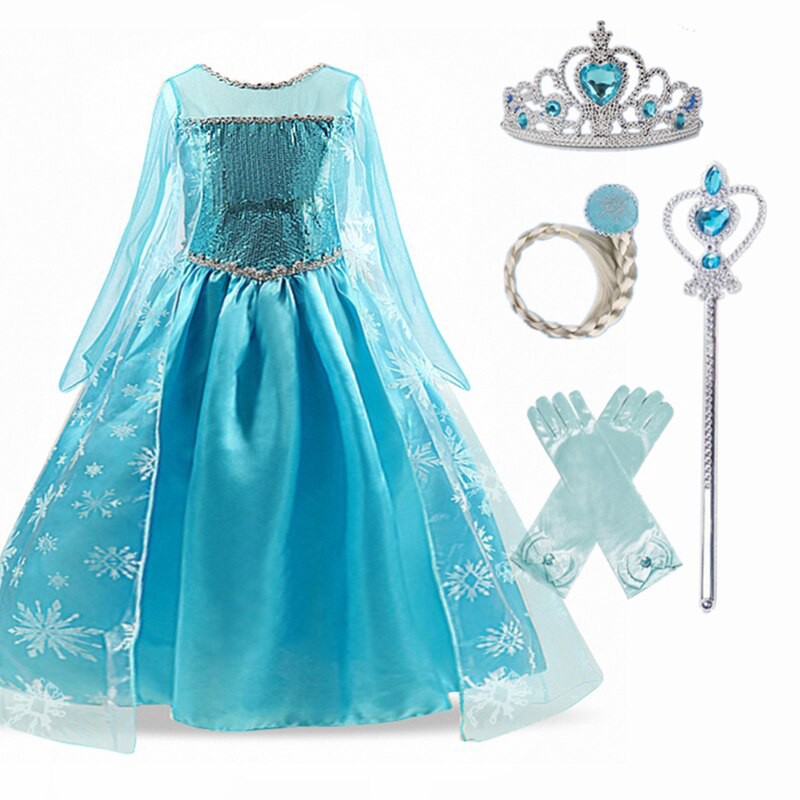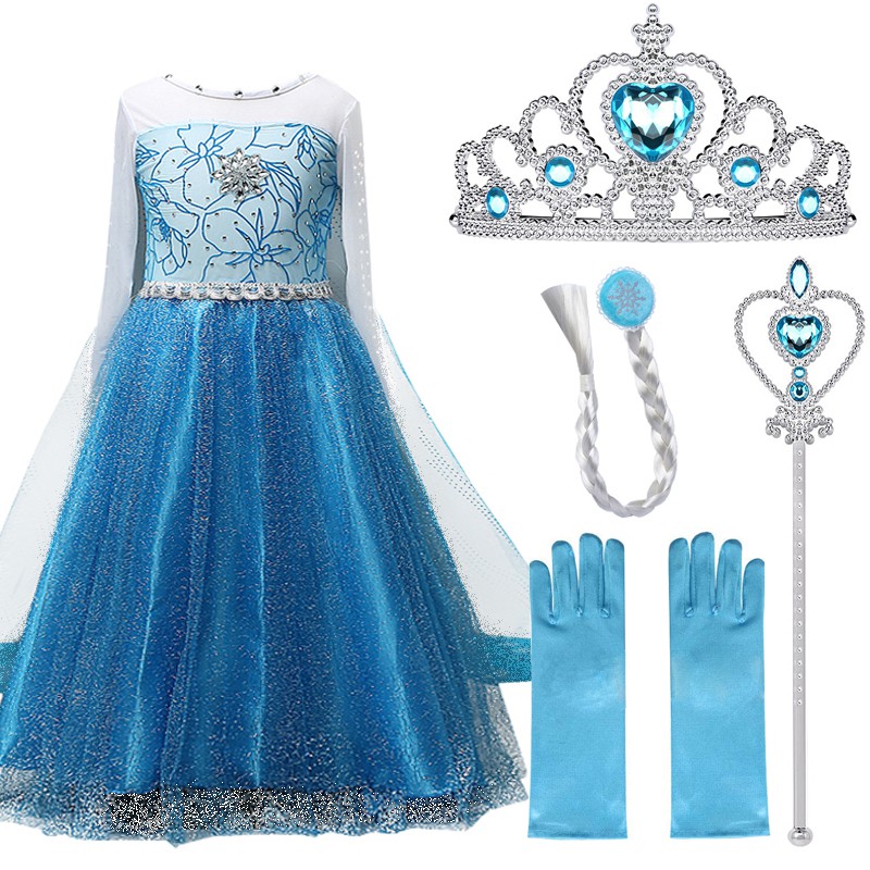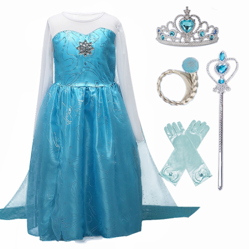 [NNJXD]Girls Dress Halloween Anna Elsa Cosplay Costume Dresses Girl Princess Elsa Dress For Birthday Party Kids Clothing