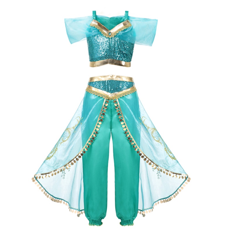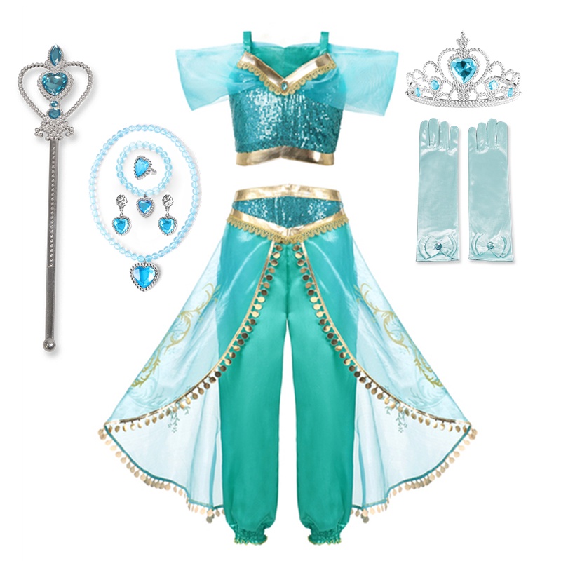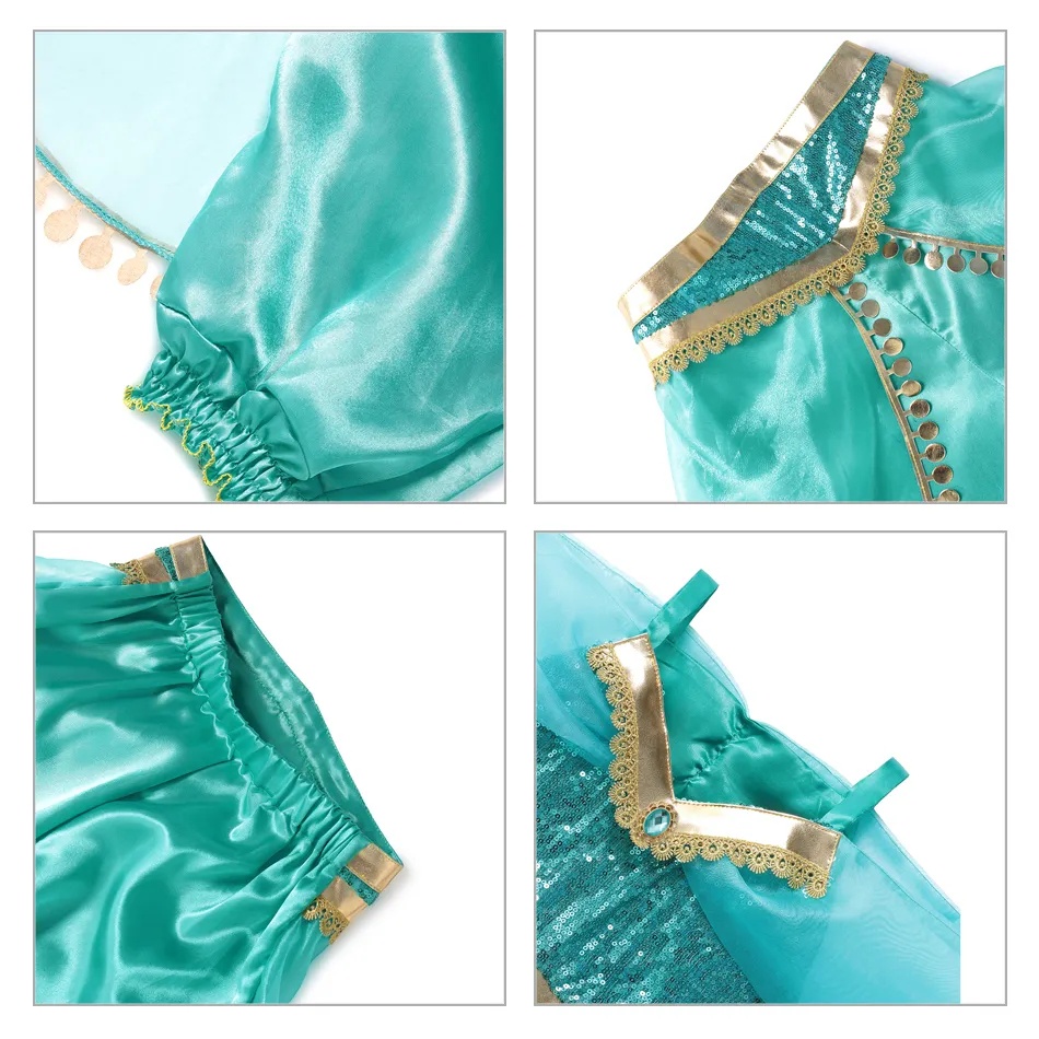 NNJXD Jasmine Princess Dress Princess Dress Up Of Aladdin The Magic Lamp Costume Girls Birthday Party Halloween Fantasy Top Pants