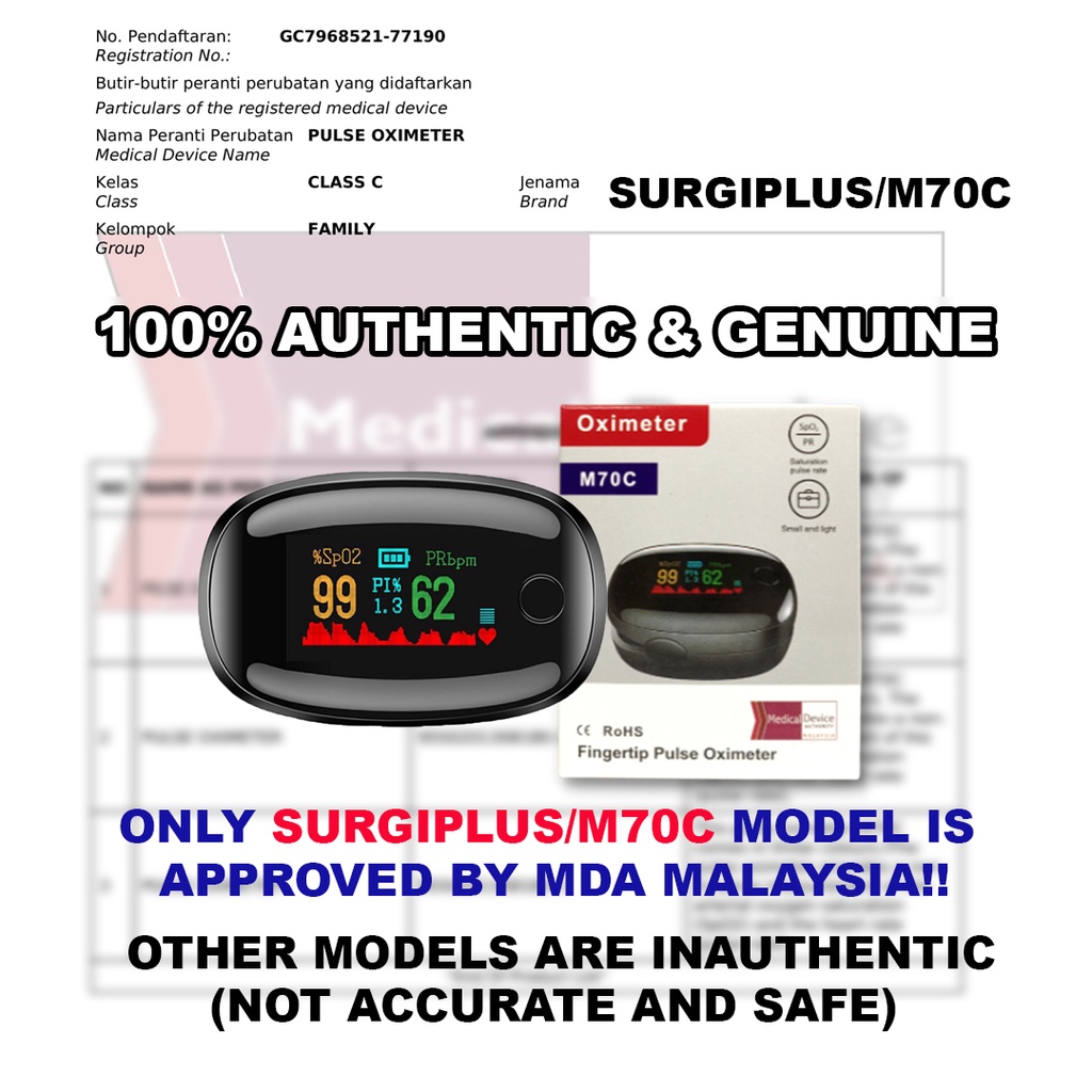 【NO.1】 Surgiplus Pulse Oximeter M70C Accurate & Fast Spo2 Reading Oxygen Meter Monitor with 10 Year Warranty!!