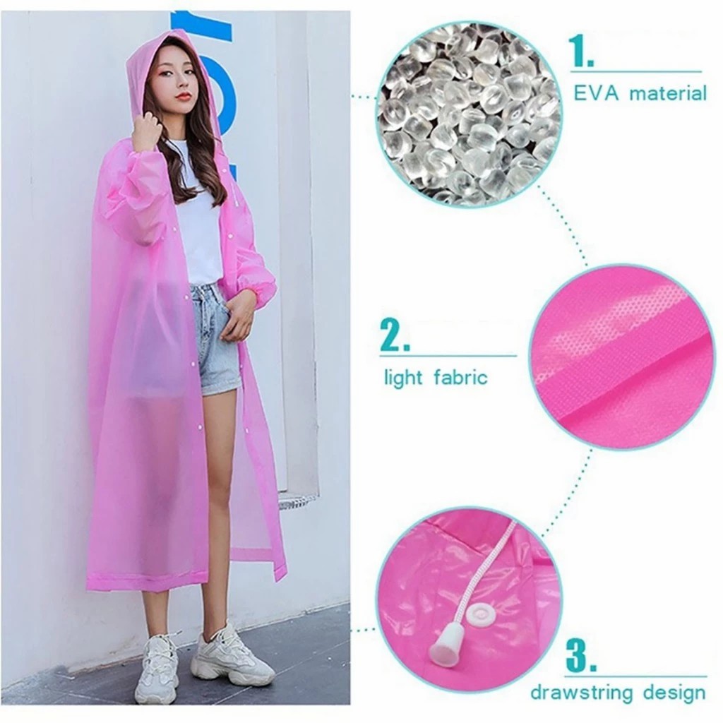 Non-Disposable Portable Adult Raincoat, EVA Poncho, Unisex Transparent One-Piece for Outdoor Travel