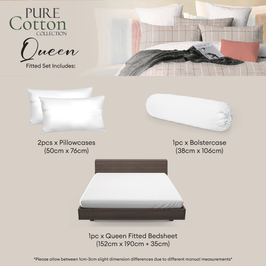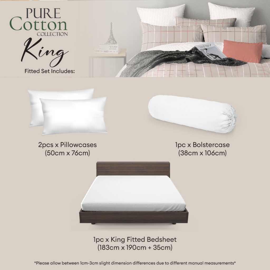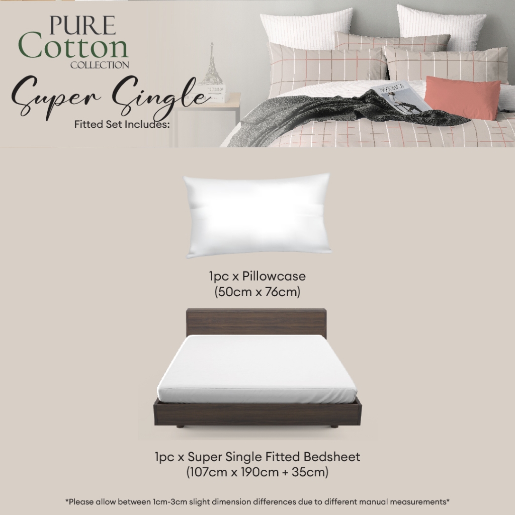 Novelle Pure Cotton Fitted Bedsheet Set (w/o Comforter or Quilt Cover) - Super Single/Queen/King 950TC