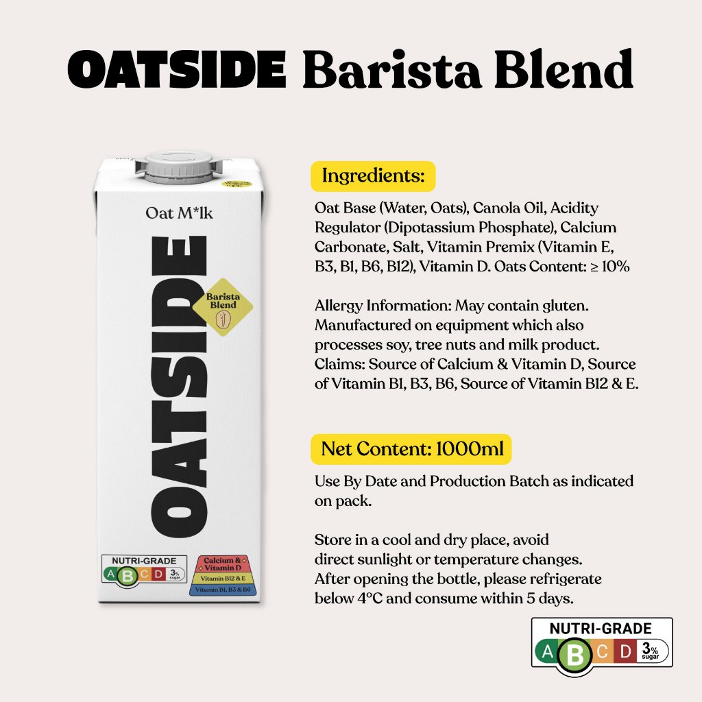 OATSIDE Barista Blend Original Oat Milk 1L x 6 - Dairy Free, Creamy, Zero Added Sugar